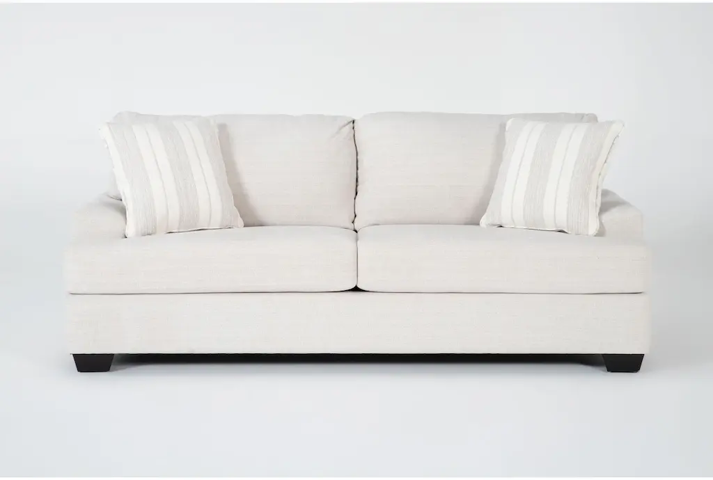 Bring comfort and style to your living room with the Tallulah Beige Fabric Birch 87" Sofa. This casual sofa features track arms and tapered legs, making it a perfect addition to any family or common room. Upholstered in 100% polyester fabric, the Tallulah sofa offers a firm comfort level for relaxing evenings.