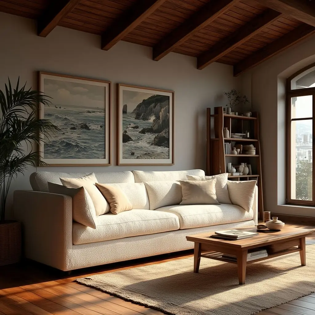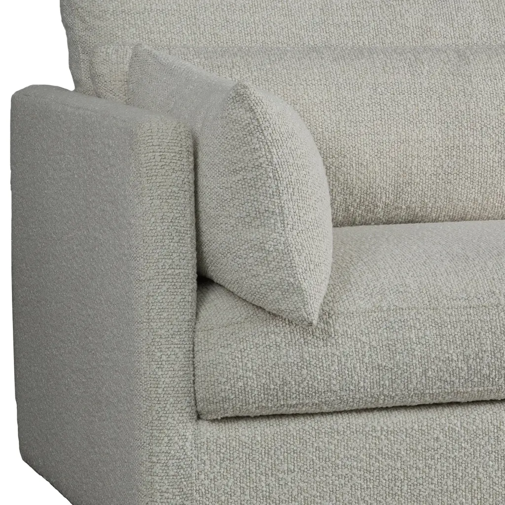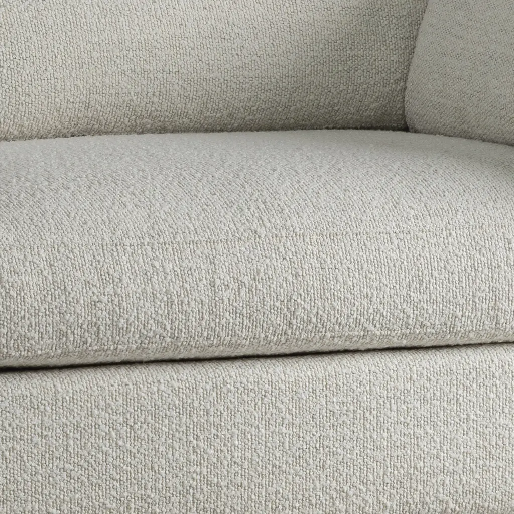 The Taormina sofa brings coziness and comfort to your space. Its micro boucle, stain-resistant fabric offers functionality, while tight upholstery and a solid wood base give the design a warming appeal.