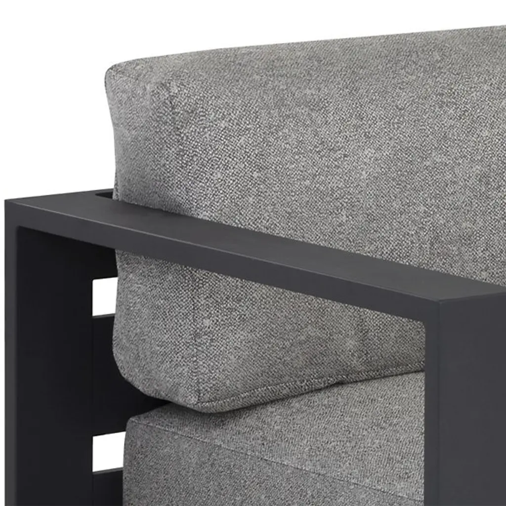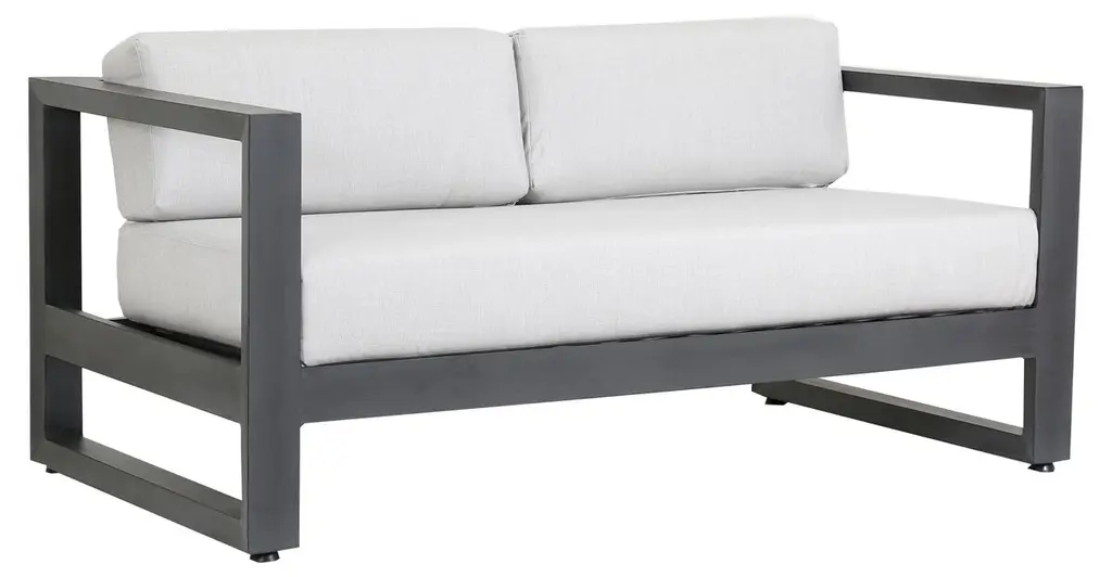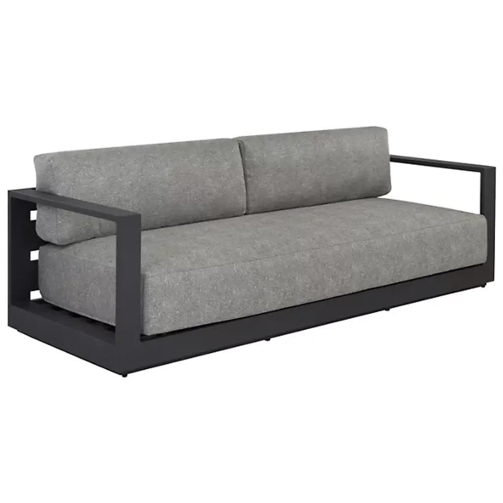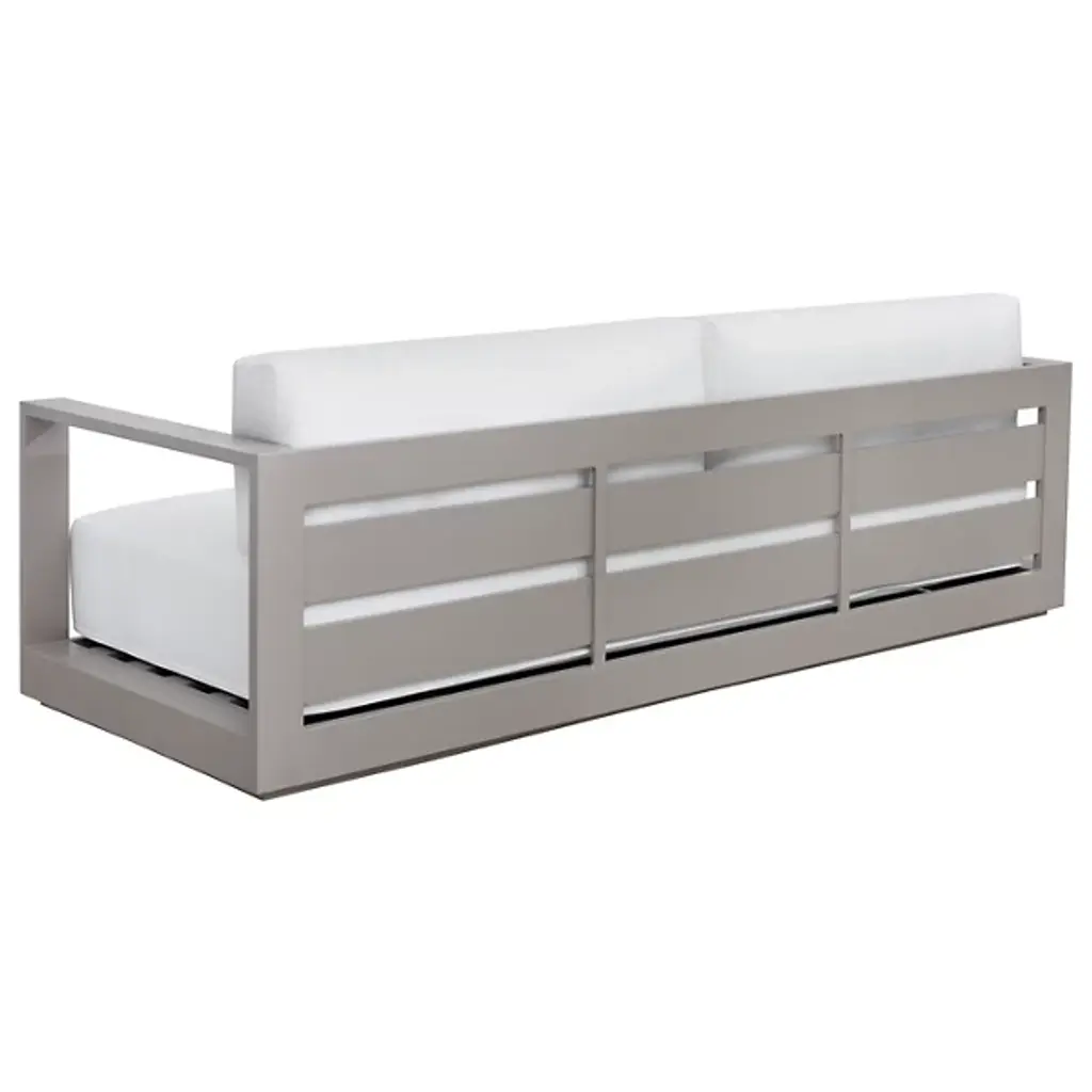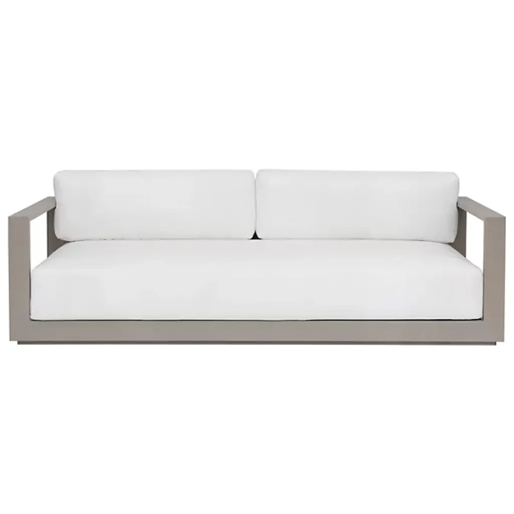 Embrace outdoor leisure with the Tavira Outdoor Sofa from Sunpan, a contemporary piece that combines comfort with laid-back elegance. Designed for modern living, this sofa features weather-resistant cushions upholstered in 100% olefin fabric, ensuring durability against the elements. Supported by a powder-coated aluminum frame, it exudes both strength and style. With its sleek design and resilient construction, this sofa seamlessly integrates into contemporary outdoor spaces, offering a relaxing retreat for al fresco lounging in style.