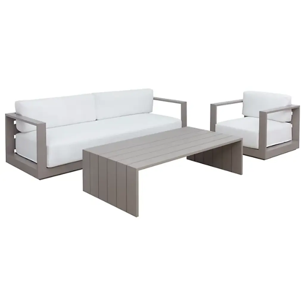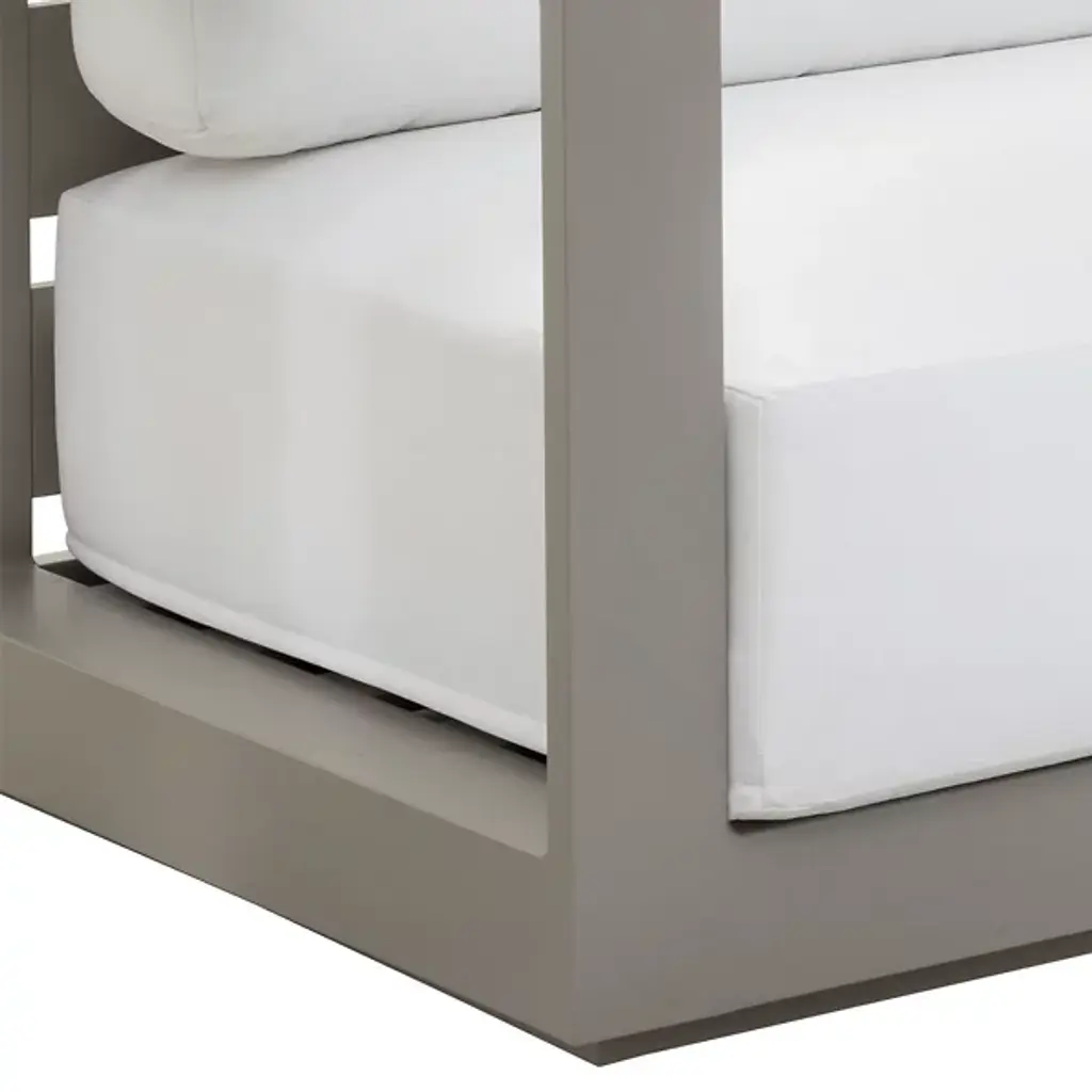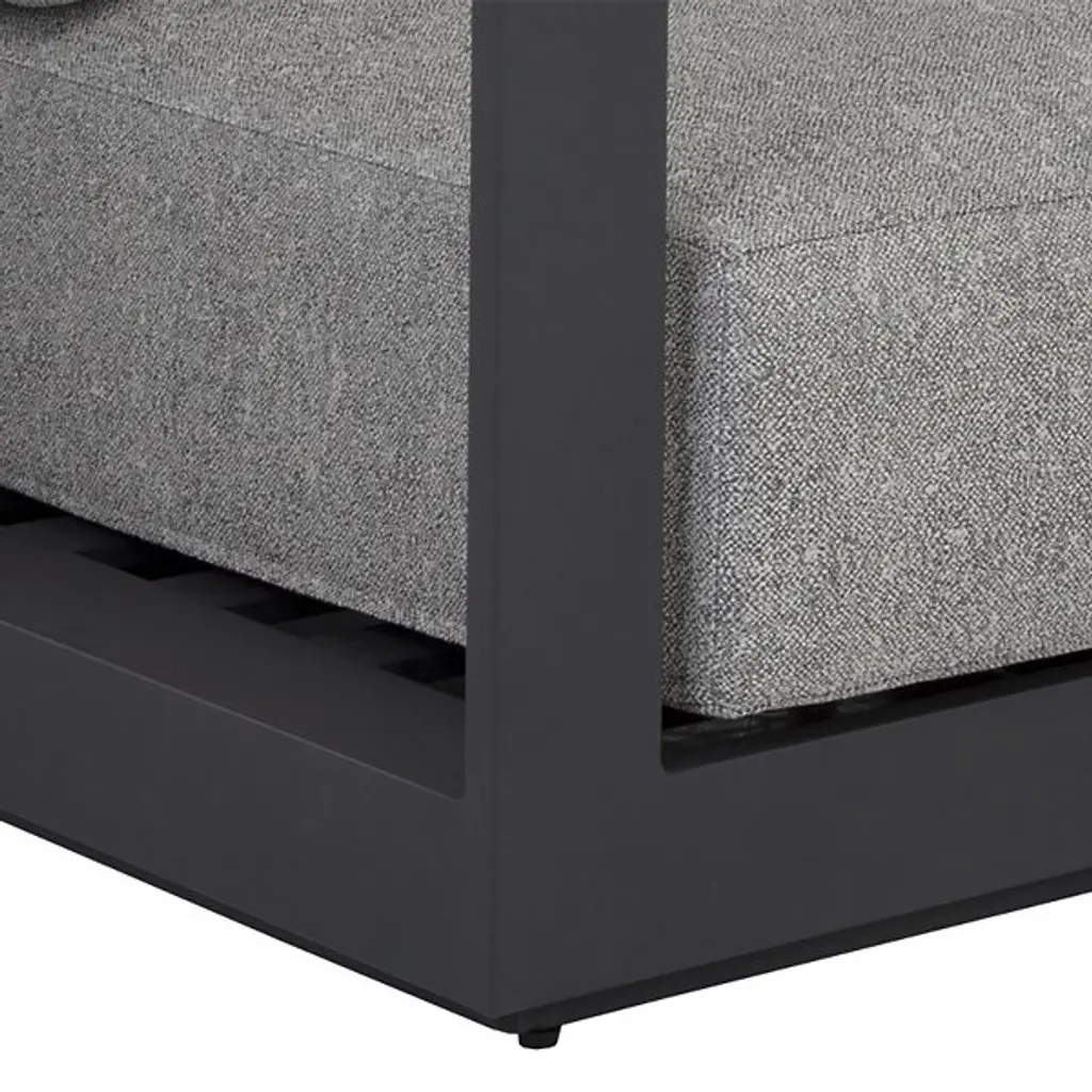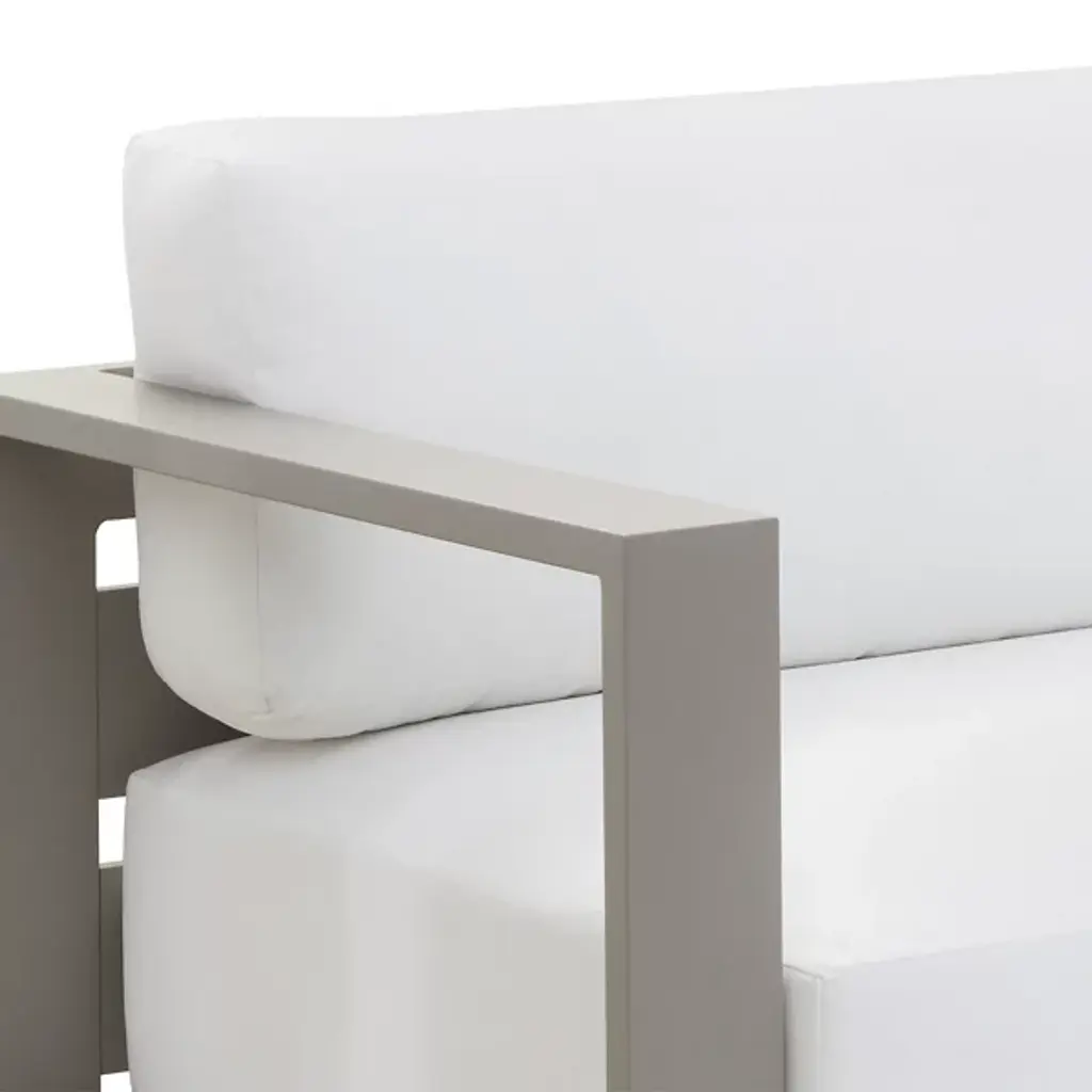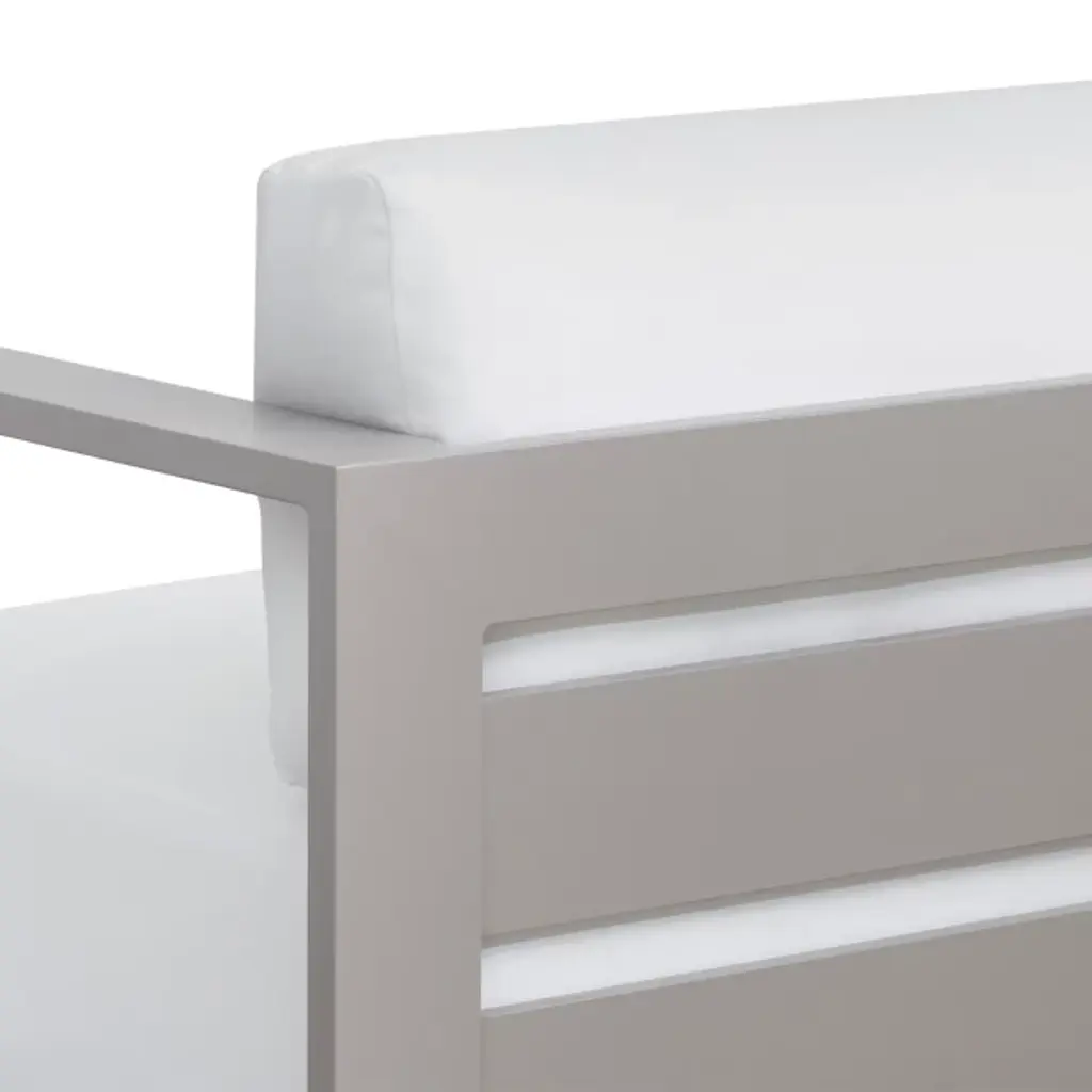 Embrace outdoor leisure with the Tavira Outdoor Sofa from Sunpan, a contemporary piece that combines comfort with laid-back elegance. Designed for modern living, this sofa features weather-resistant cushions upholstered in 100% olefin fabric, ensuring durability against the elements. Supported by a powder-coated aluminum frame, it exudes both strength and style. With its sleek design and resilient construction, this sofa seamlessly integrates into contemporary outdoor spaces, offering a relaxing retreat for al fresco lounging in style.