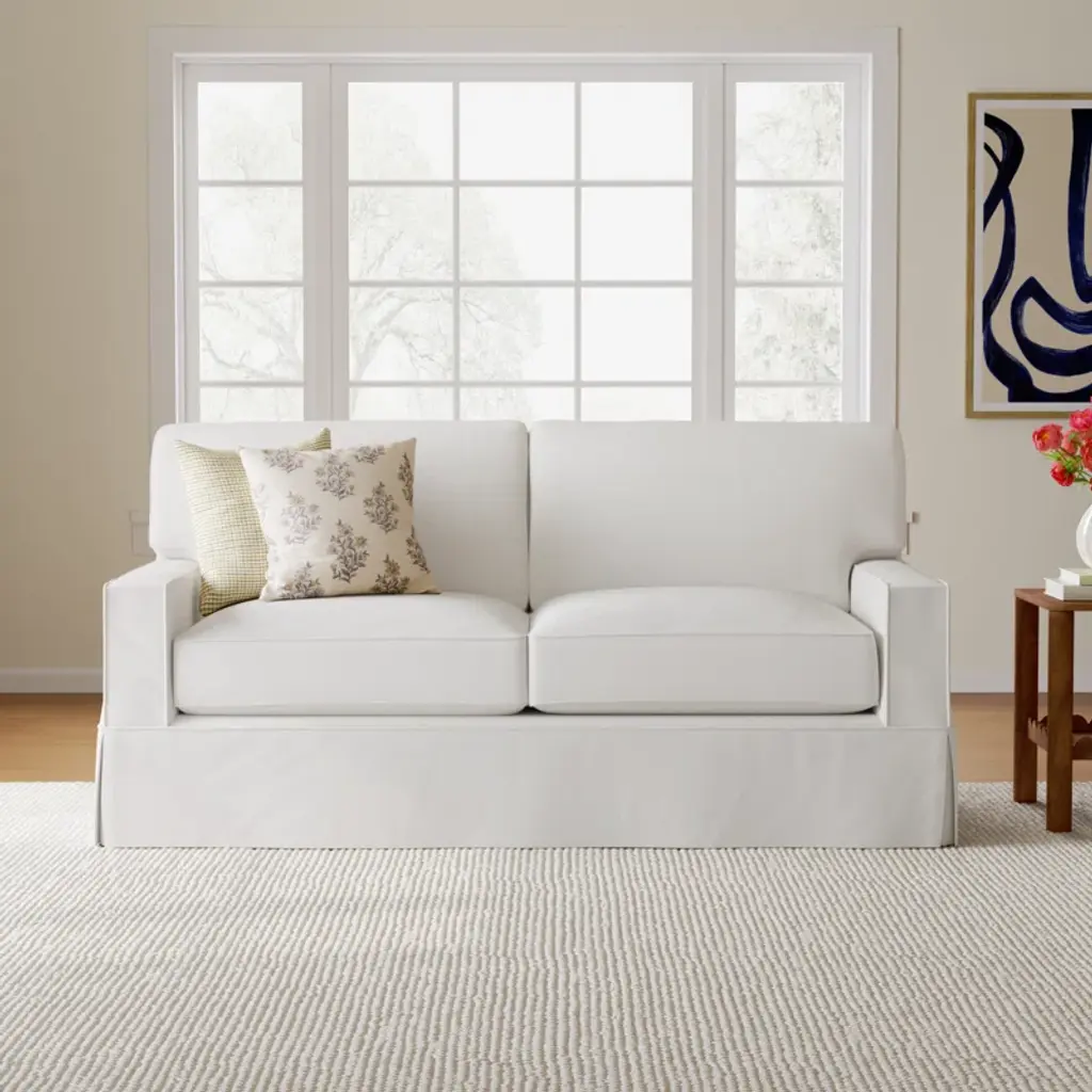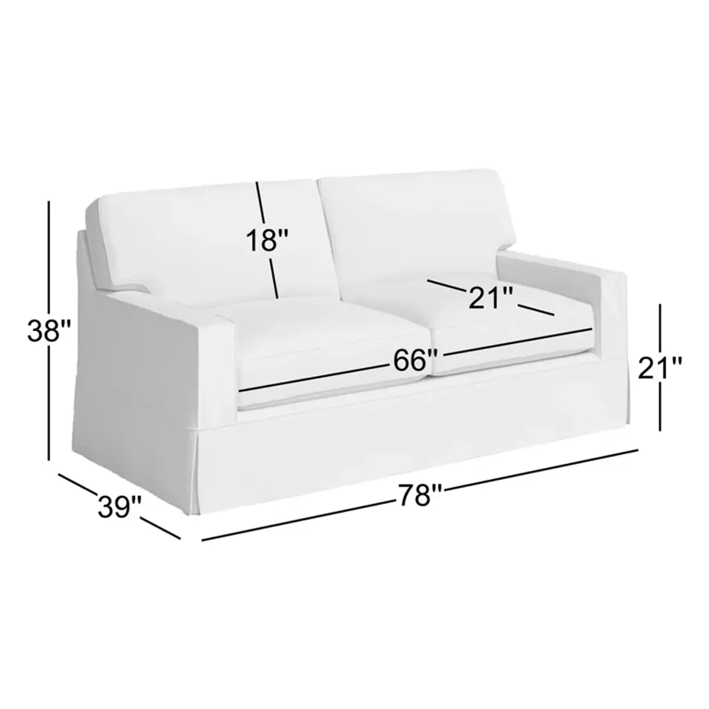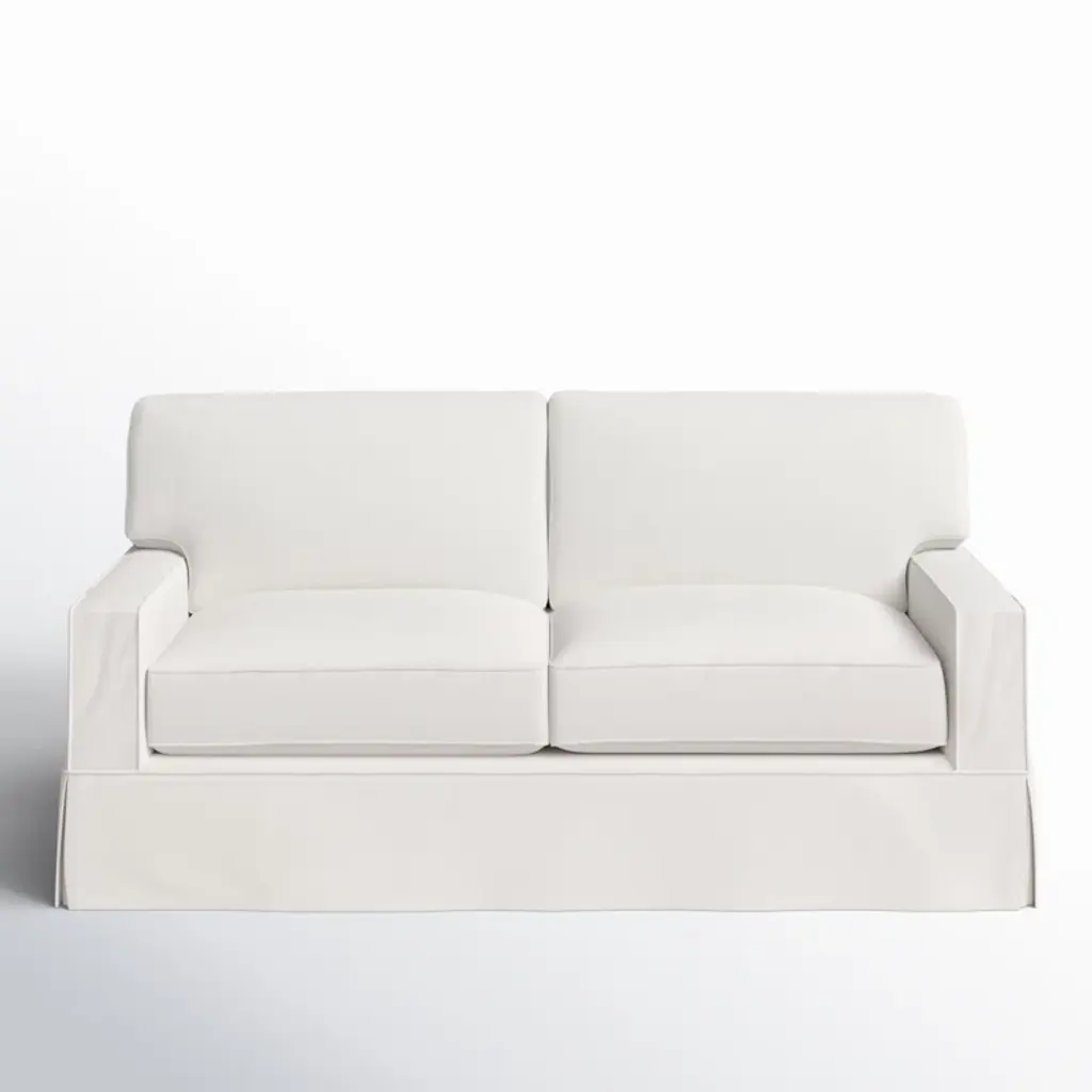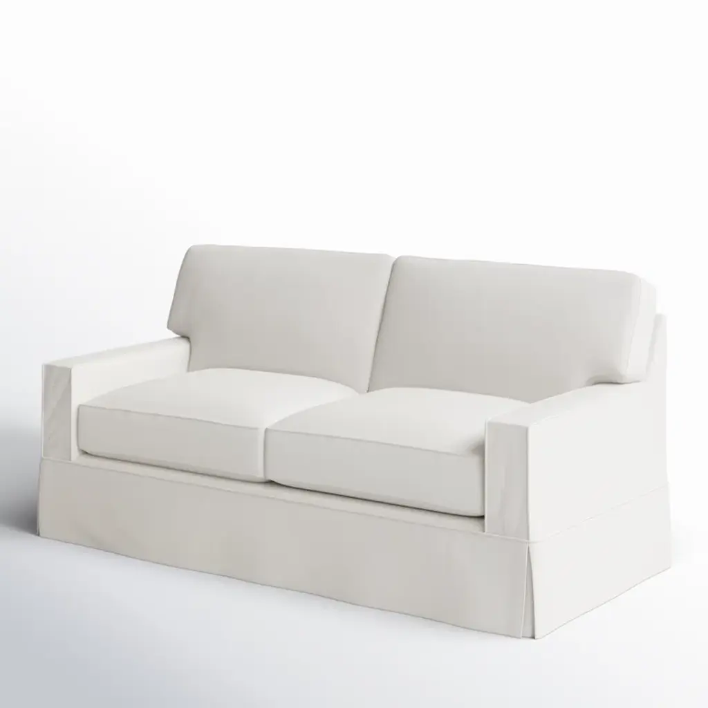 Embrace the cozy and inviting feel of this standard sofa, designed to bring warmth and comfort to your living space. With its cushioned back, multiple cushion seat, and square arms, you'll find it's the ideal spot for lounging with family and friends. Upholstered in soft cotton fabric, this sofa features a slipcovered design in a solid color, making it a versatile addition to any room. The foam and down-filled cushions provide a plush seating experience, while the sinuous springs and plywood frame ensure reliable support. Plus, the removable cushion covers make cleaning a breeze. Just remember to use a dry, solvent-based cleaner for spot cleaning. Perfect for residential use, this sofa seats three and is ready to become your new favorite relaxation spot.