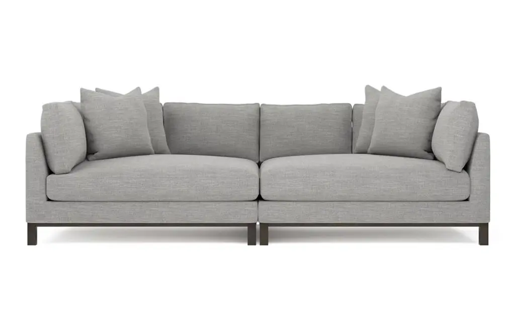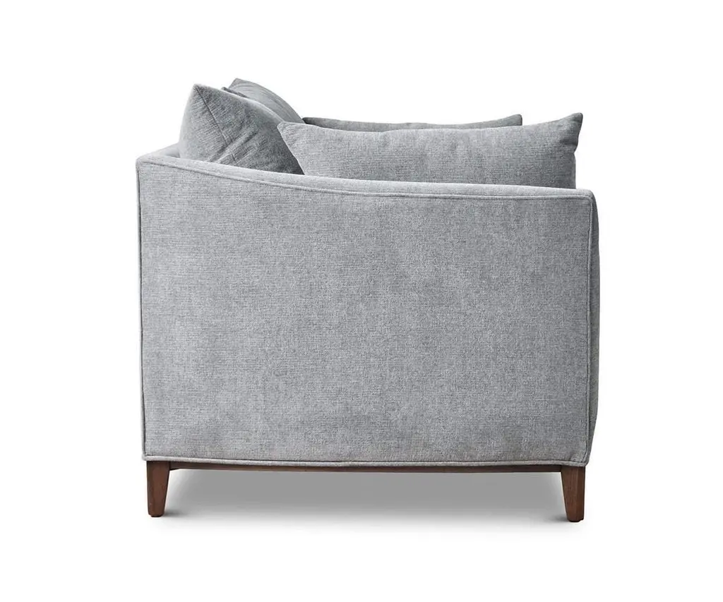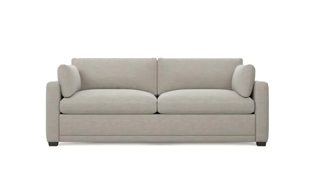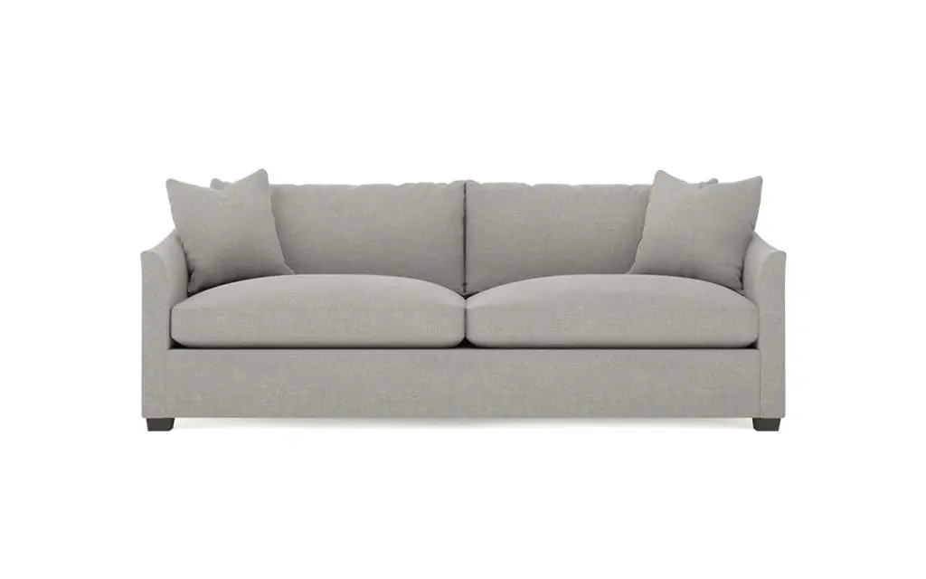 Made in the USA, the Taylor Sofa provides plush seating with just the right amount of flair to blend in beautifully with your living room decor. Subtly curved arms that lead to the solid American walnut base and tapered legs give this piece a graceful aesthetic, while the plump cushions, two arm pillows and two toss pillows (included) ensure comfort and support. Matching toss pillows not shown.