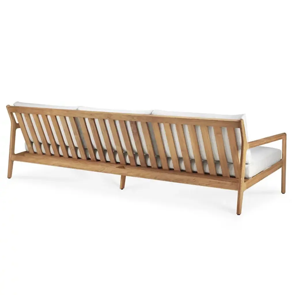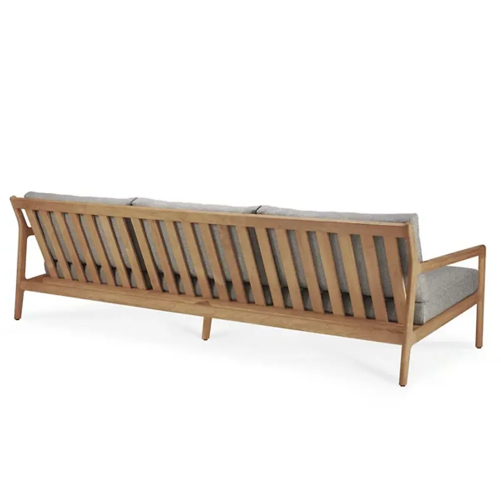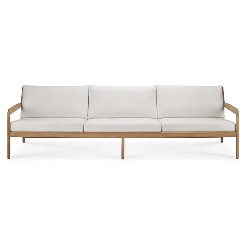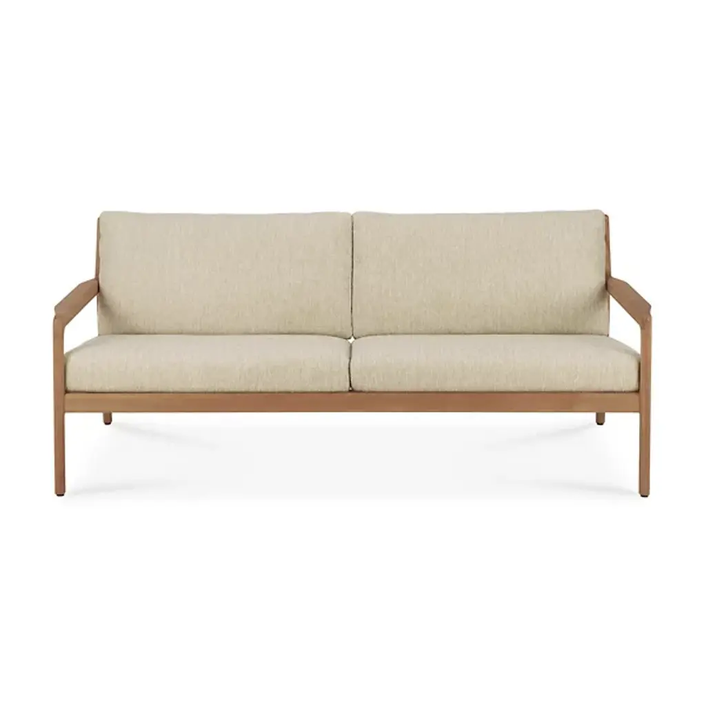 Simple, solid sophistication. Make the outdoors you and your family’s haven with a shared seat on top of the Teak Jack Outdoor Sofa from Ethnicraft. It helps create memories as it invites conversation with a construction that’s built to last. Nothing says enduring like solid teak wood. Artisans work the legendary weather-resistant material into a neat frame that flows from side to side. The open frame props you up with carefully arranged angles for great comfort. The teak’s golden hues and artful grain make for an elegant pair with low-profile cushions. Woven in Belgium, the upholstered cushions add just the right amount of support to your back and bottom. If the rain passes by, the foam cushions dry quickly, so you’re back to lounging in good time.