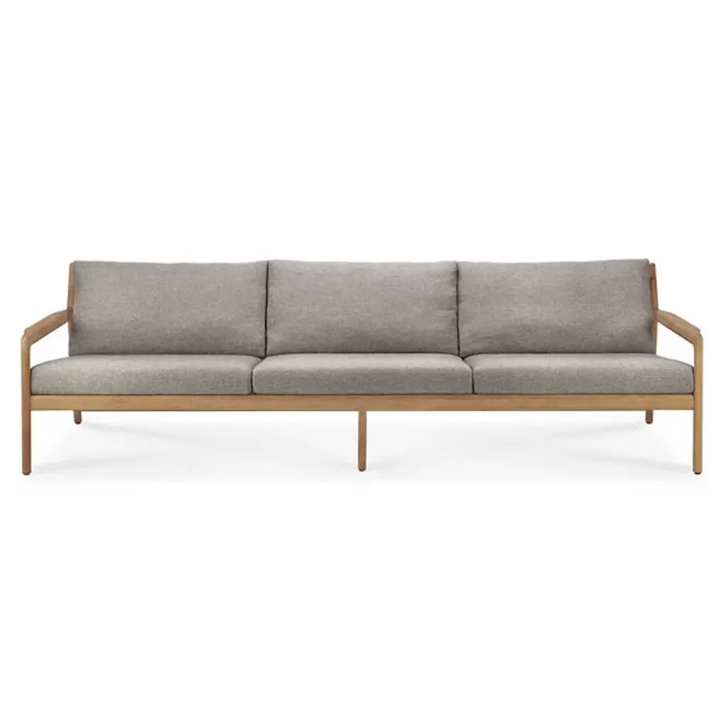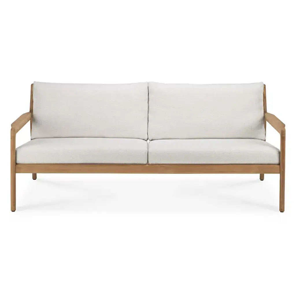 Simple, solid sophistication. Make the outdoors you and your family’s haven with a shared seat on top of the Teak Jack Outdoor Sofa from Ethnicraft. It helps create memories as it invites conversation with a construction that’s built to last. Nothing says enduring like solid teak wood. Artisans work the legendary weather-resistant material into a neat frame that flows from side to side. The open frame props you up with carefully arranged angles for great comfort. The teak’s golden hues and artful grain make for an elegant pair with low-profile cushions. Woven in Belgium, the upholstered cushions add just the right amount of support to your back and bottom. If the rain passes by, the foam cushions dry quickly, so you’re back to lounging in good time.