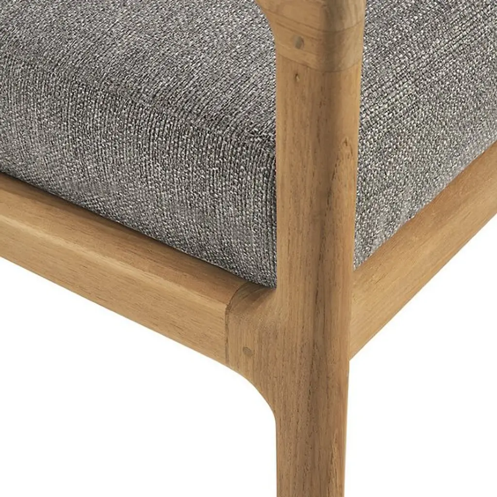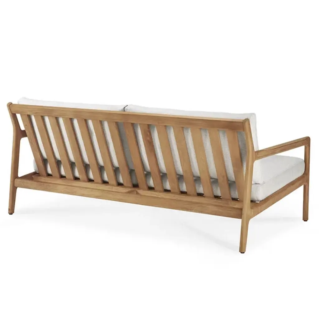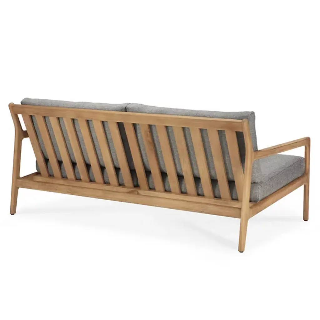 Simple, solid sophistication. Make the outdoors you and your family’s haven with a shared seat on top of the Teak Jack Outdoor Sofa from Ethnicraft. It helps create memories as it invites conversation with a construction that’s built to last. Nothing says enduring like solid teak wood. Artisans work the legendary weather-resistant material into a neat frame that flows from side to side. The open frame props you up with carefully arranged angles for great comfort. The teak’s golden hues and artful grain make for an elegant pair with low-profile cushions. Woven in Belgium, the upholstered cushions add just the right amount of support to your back and bottom. If the rain passes by, the foam cushions dry quickly, so you’re back to lounging in good time.