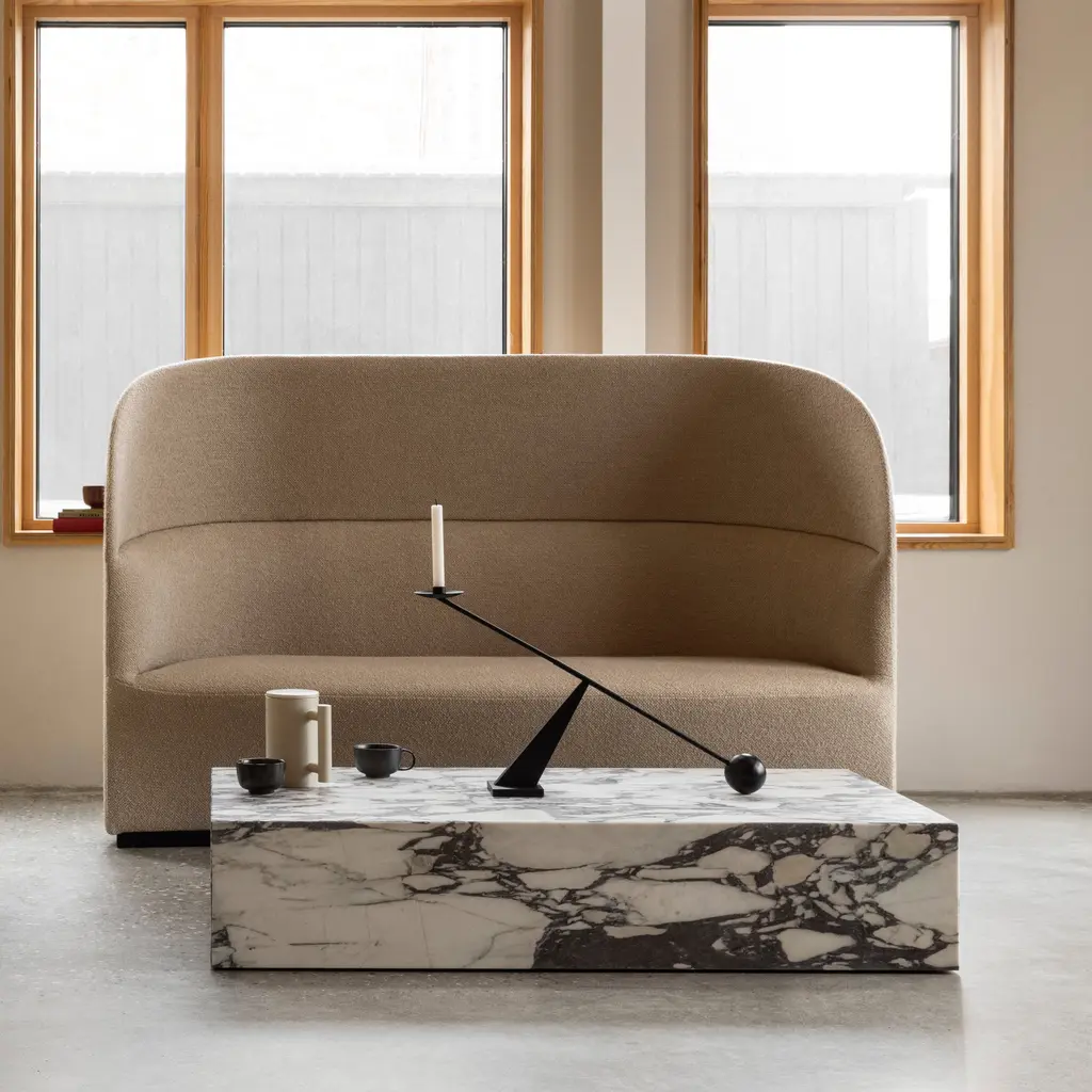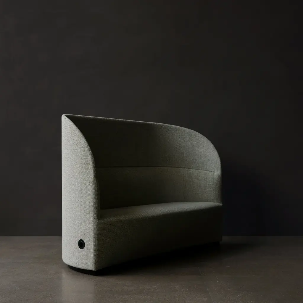 Create a sheltering enclave for calm and privacy with the sofa version of Tearoom Highback that includes the optionof a USB port and power socket at the base for completely seamless functionality. Audo’s foam-filled contours rest on a wooden base, offering a rich counterpoint to a range of upholstery choices in both quick-ship stock and custom materials.