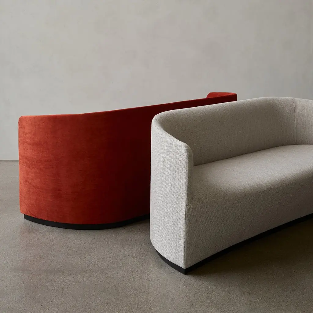 The Tearoom Sofa from Audo Copenhagen (formerly Menu) represents the culmination of Scottish-Swedish designer Nick Ross's exploration of geometric forms and embracing comfort. Expanding on the design language established in the Tearoom collection, this generously proportioned sofa pairs luxurious full upholstery with a clean, architecturally-informed silhouette that makes a confident statement in any interior setting. The sofa's visual lightness belies its substantial comforta testament to Ross's meticulous approach to proportion and scale. Every curve and angle of the Tearoom Sofa has been precisely calculated to support the body's natural contours while maintaining a refined aesthetic presence. The gently curved backrest and wide seat create an inviting embrace that accommodates multiple users with equal comfort, making it ideal for both social gatherings and moments of private relaxation. This thoughtful consideration of human ergonomics embodies Ross's design philosophy of creating furniture that elevates both the space it occupies and the experience of those who use it. Beneath its sumptuous upholstery, a sophisticated construction of wood frame and layered foam cushioning provides the perfect balance of structural integrity and plush comfort. This engineering excellence ensures the sofa will maintain its shape and support through years of use, developing a rich patina that tells the story of your home. Available in an extensive range of premium upholstery options, the Tearoom Sofa can be customized to complement any interior palette while maintaining its distinctive character. Perfect for creating sophisticated focal points in living rooms, enhancing hospitality environments, or establishing conversation areas in corporate settings, the Tearoom Sofa makes a statement of refined elegance without overwhelming its surroundings. The design maintains a clear visual connection to the 1904 Willow Chair that initially inspired Ross while introducing contemporary proportions and comfort standards. This sofa embodies Nick Ross's interest in bridging past and present through design that honors historical influences while addressing the needs and aesthetics of contemporary living.