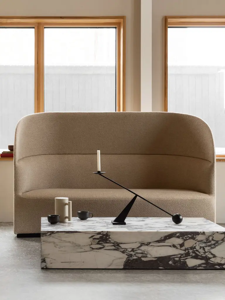 The high back version of the Tearoom Sofa offers moments of quiet contemplation in busy spaces. Expressive and elegant, the secluded, foam-filled furniture piece rests on a wooden base for a natural contrast to the upholstered seat. The addition of a USB port and power socket at the base makes it a practical spot for work as well as play. USB power outlets cannot be added after purchasing a lounge chair without a power outlet.