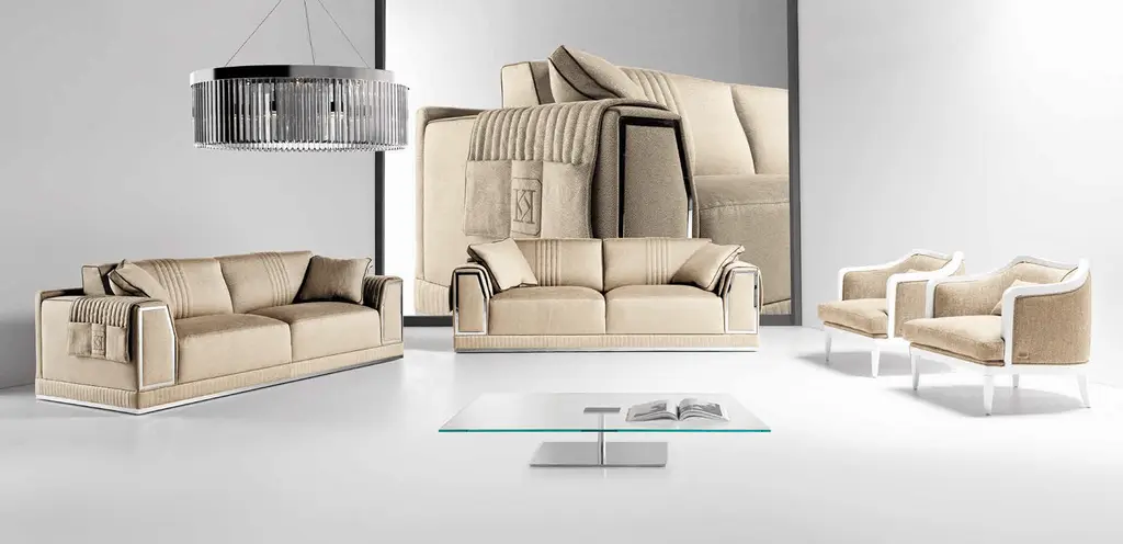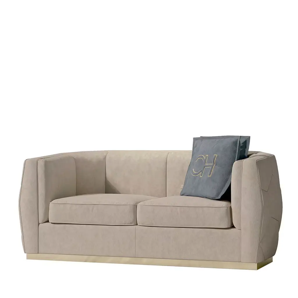 Characterized by a soft backrest perfectly shaped that enhances comfort. The matte brown wooden frame accompanies the beige econubuck upholstery. Small details like the metal base and stripe placed in the wooden frame complete the design to create a unique piece, making it more stylish and perfect for every contemporary home. Please ask Concierge for customization options.