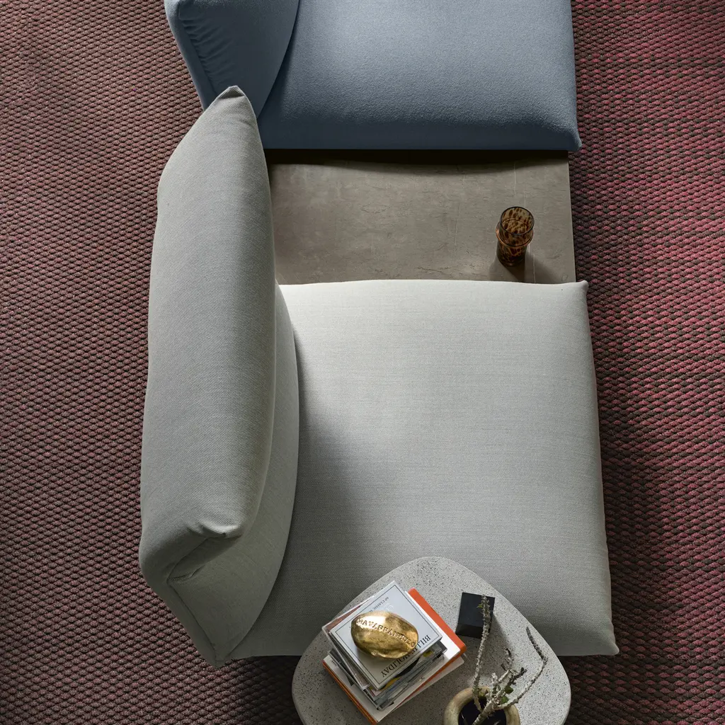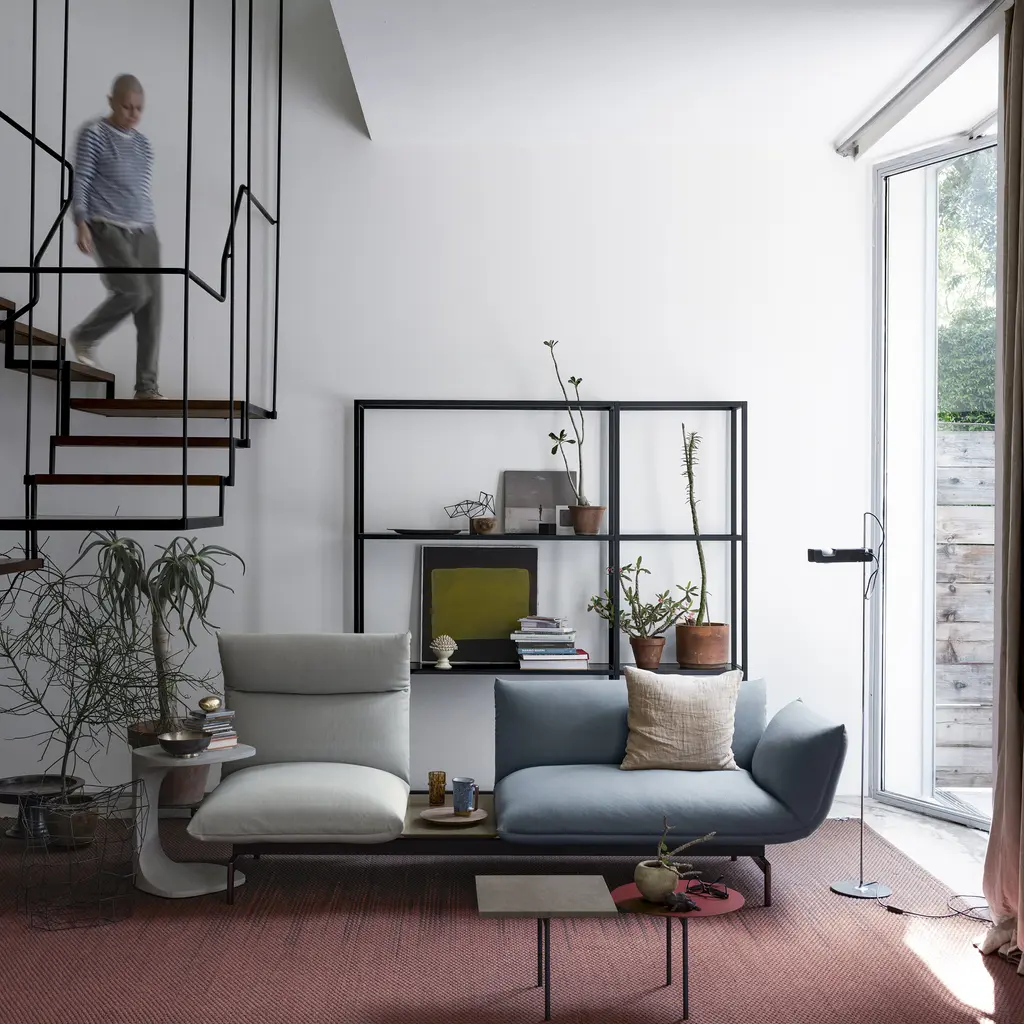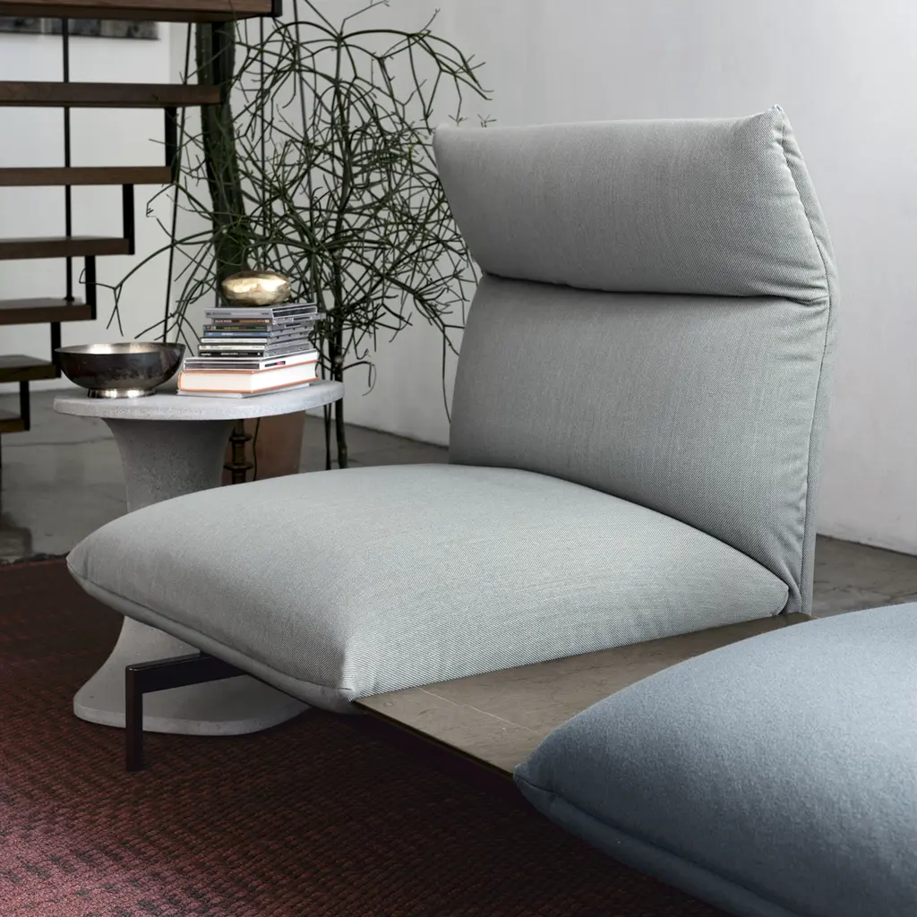 Designed by Luca Nichetto, Tenso is a system comprising padded items inspired by tensile structures. The core of the system is its frame, a light and sturdy tubular structure to which the various elements are fixed – seats, backrests, cushions and tabletops, between which a tension is created that keeps the various parts suspended and open, like a welcoming embrace. The padded items, which can be combined as required to create sofas, sofas with a peninsula element or a pouf, also with built-in tabletops, are soft and comfortable, whereas the upholstery in fabric or leather features tailored details. The element with a reclining headrest offers extra comfort to those who love reading or watching TV.