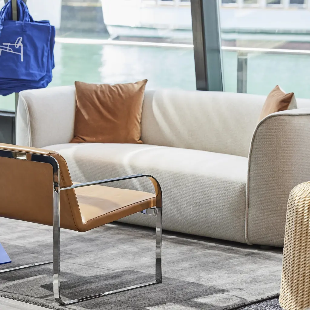 Merging curves and comfort, Thataway is hanging at the intersection of the nearly unassuming and “Whoa, what's that?” Normal and unusual all at once, Thataway’s tight seat and back provide an agreeable sit, while the sweeping arms deliver the pretty. Features