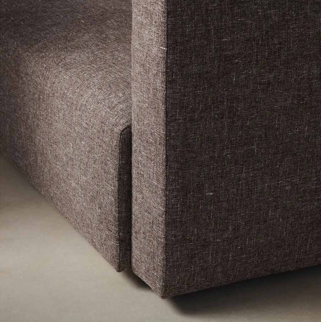 The Breuer Sofa draws inspiration from the bold and graphic shapes of brutalist design. Tightly upholstered for a sleek look, it has a low-lying seat accompanied by plush throw pillows. Handcrafted in North Carolina.