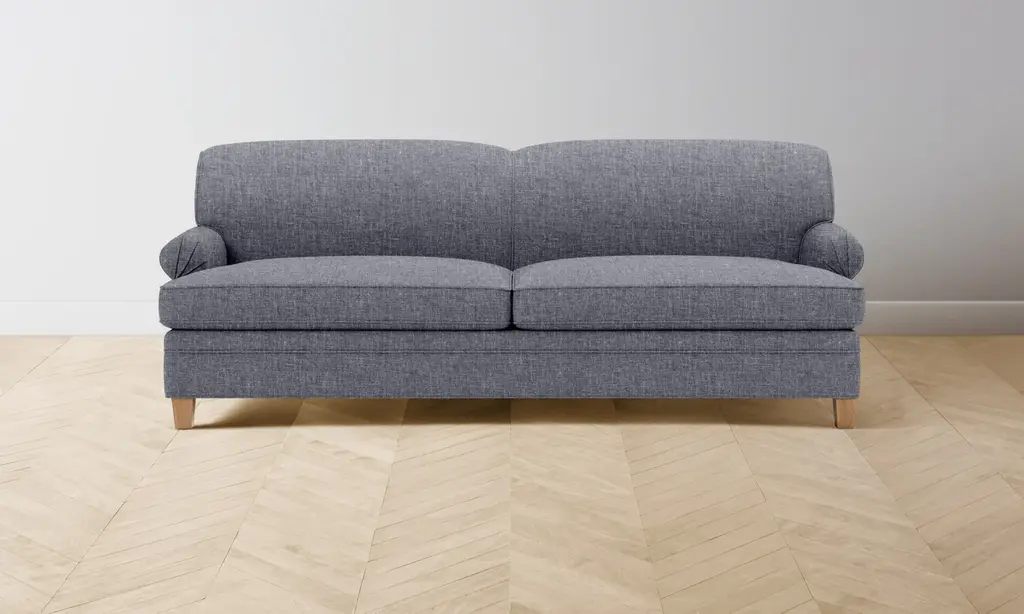 Neatly tailored and detailed with fan-pleated arms, the Carmine Sofa casts an air of elegance upon your space. It sits on tapered wood legs that round out the design’s polished appeal. Handcrafted in North Carolina.