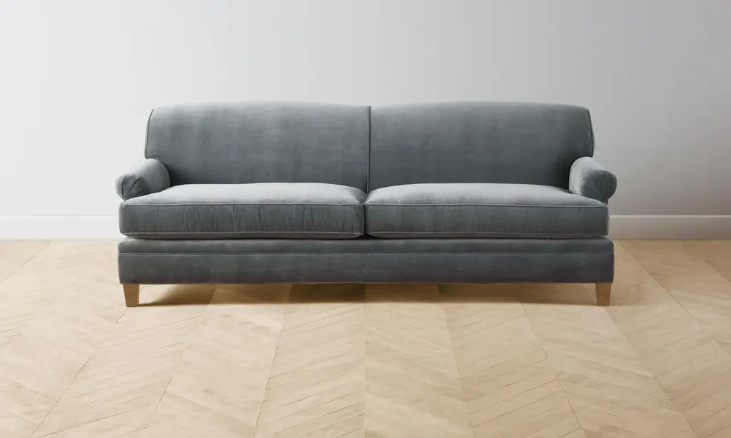 The Carmine Sofa - Nubuck Leather Asphalt - 90" Width / Driftwood Maple