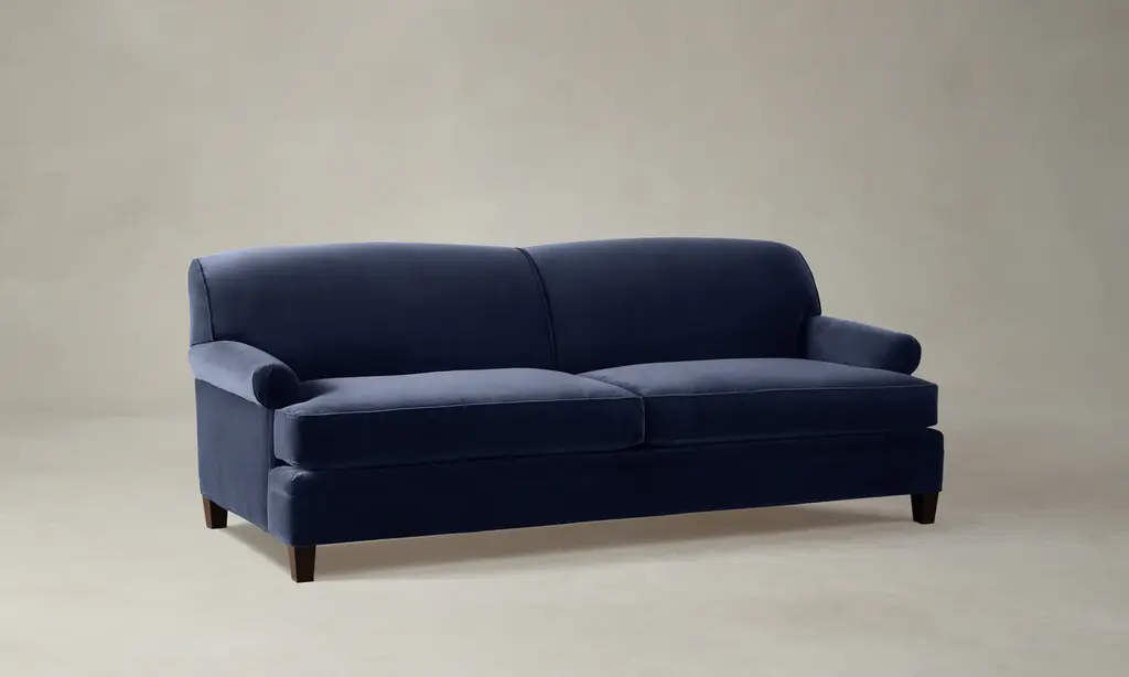 Neatly tailored and detailed with fan-pleated arms, the Carmine Sofa casts an air of elegance upon your space. It sits on tapered wood legs that round out the design’s polished appeal. Handcrafted in North Carolina.
