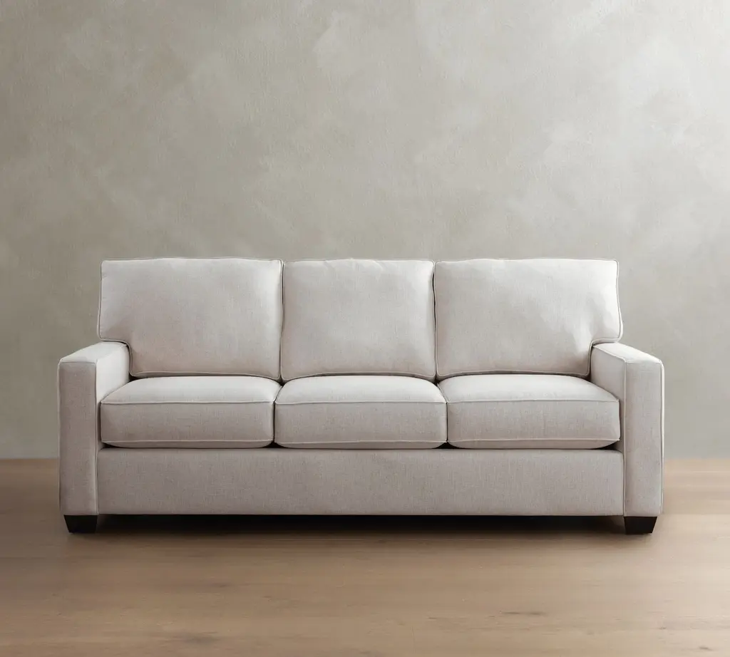The Crosby Sofa is a testament to the charm of simplicity. With a slender profile that suits spaces small and large, the design is neatly upholstered with cord welts and sits atop tapered legs. Handcrafted in North Carolina.