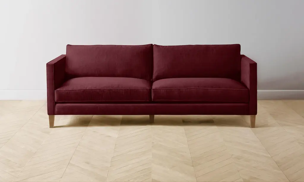 The Crosby Sofa - Performance Velvet Merlot - 60" Width / Coffee Maple