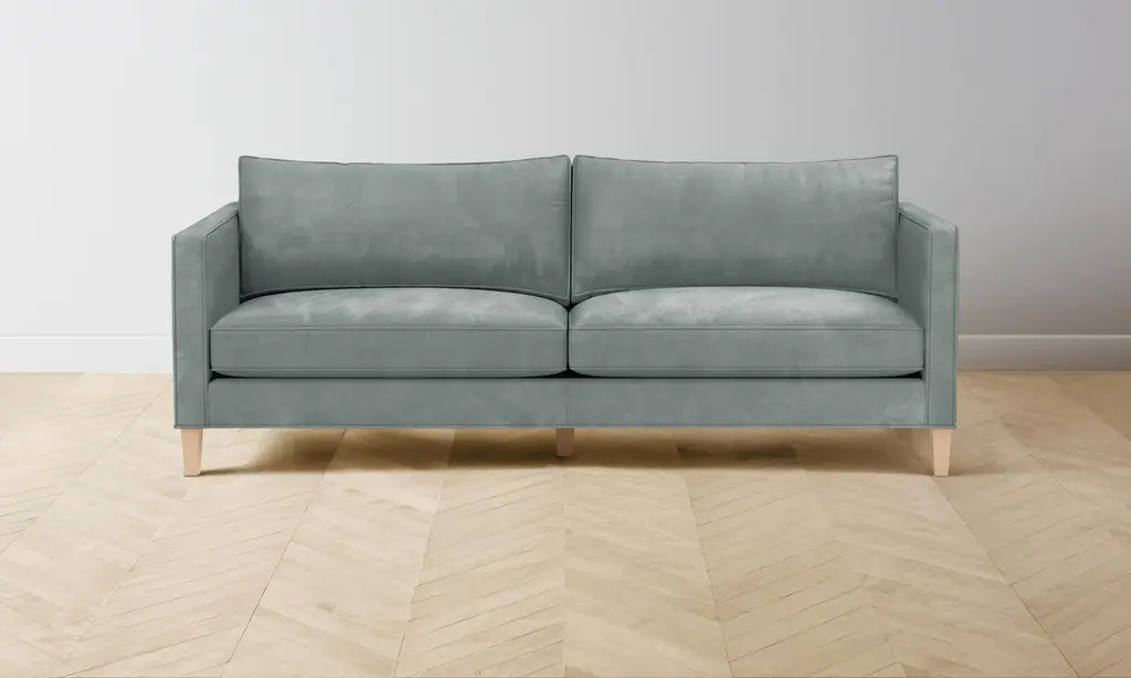 The Crosby Sofa - Performance Velvet Seafoam - 75" Width / Pecan Maple