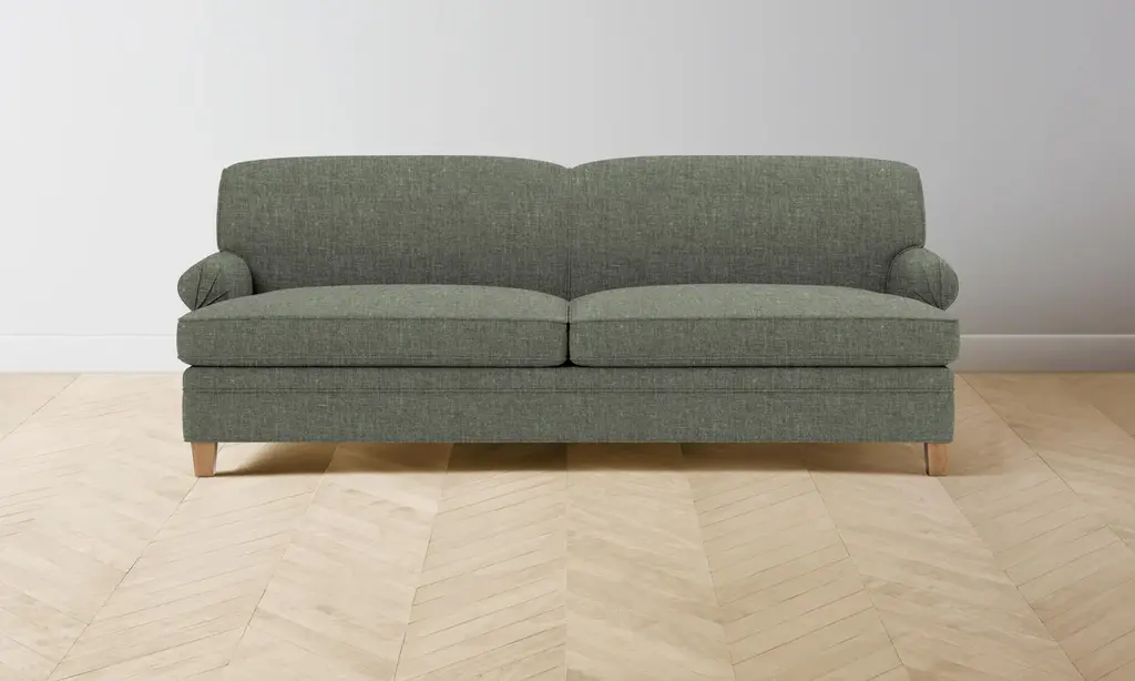 The Lenox Sofa - Performance Velvet Emerald - 100" Width / Driftwood Maple