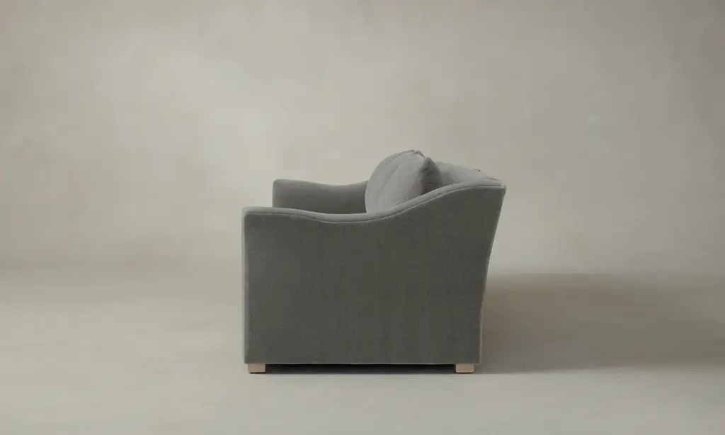 The Lenox Sofa is distinguished by its flared silhouette and sloped arms—together, they extend an invitation to relax. The frame is tightly upholstered and set upon recessed legs. Handcrafted in North Carolina.