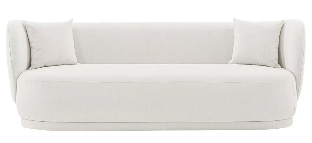 The Lenox Sofa is distinguished by its flared silhouette and sloped arms—together, they extend an invitation to relax. The frame is tightly upholstered and set upon recessed legs. Handcrafted in North Carolina.