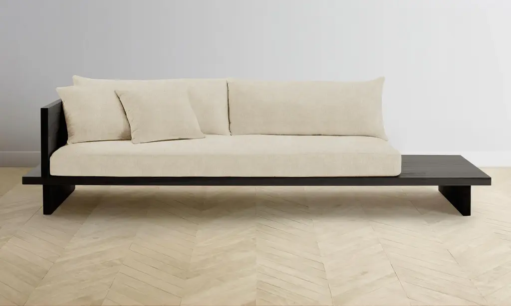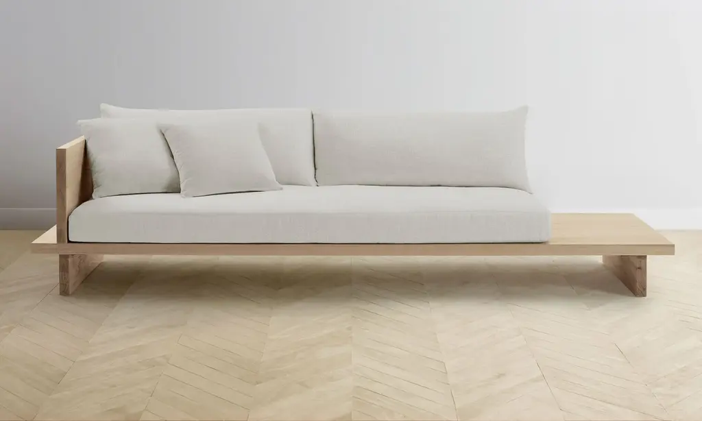 From the woodwork to the tailoring, every element of the Muir Sofa is a display of exquisite artisanship. Its angular frame extends beyond the seat cushion, allowing space for decorative objects or necessities. Handcrafted in North Carolina.