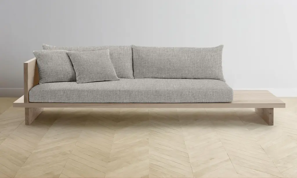 The Muir Sofa - Heritage Belgian Linen Lake - 80" Width / Arm On Left / Whitewash Ash