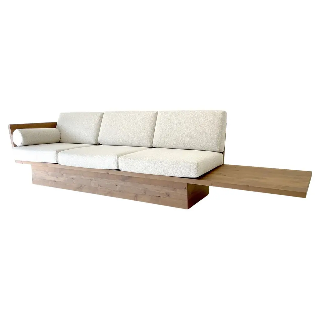 From the woodwork to the tailoring, every element of the Muir Sofa is a display of exquisite artisanship. Its angular frame extends beyond the seat cushion, allowing space for decorative objects or necessities. Handcrafted in North Carolina.