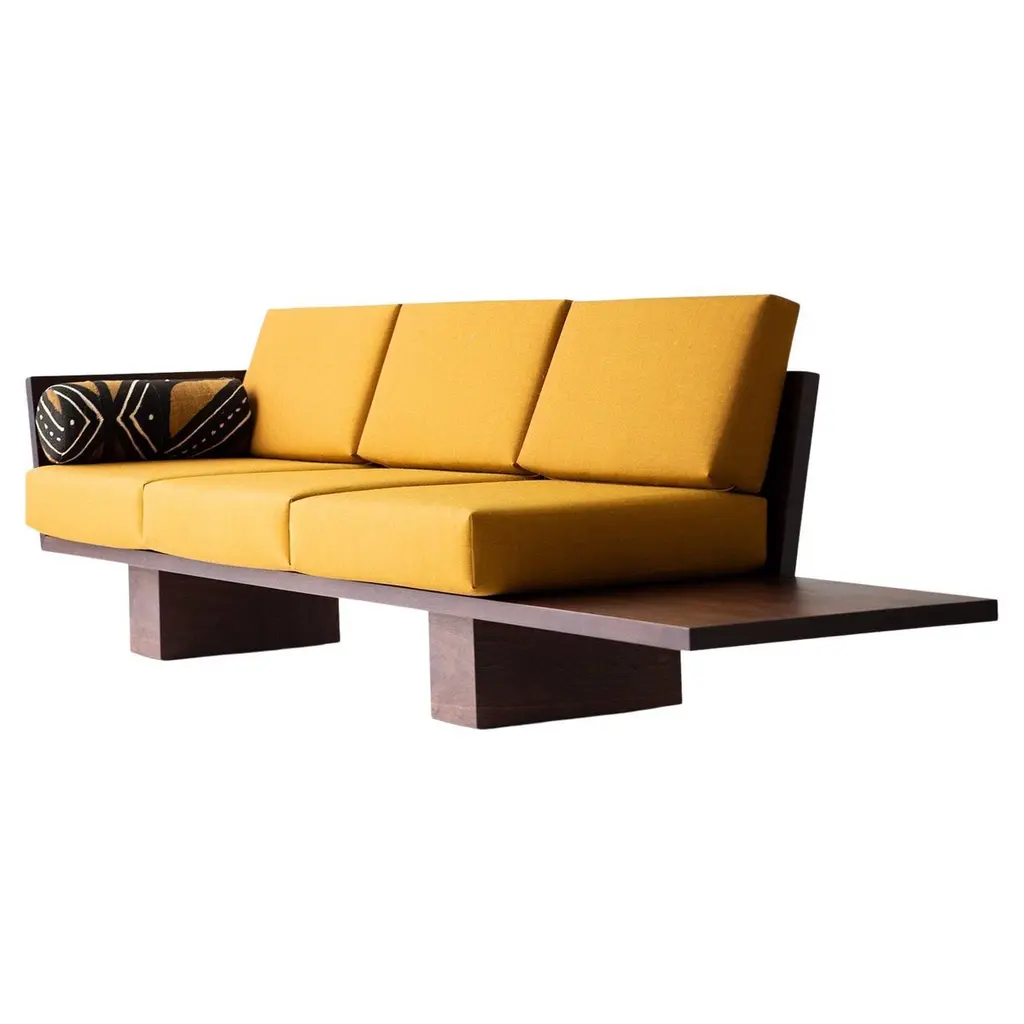 From the woodwork to the tailoring, every element of the Muir Sofa is a display of exquisite artisanship. Its angular frame extends beyond the seat cushion, allowing space for decorative objects or necessities. Handcrafted in North Carolina.