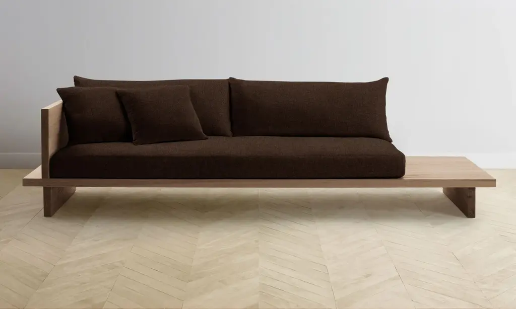 The Muir Sofa - Mohair Chocolate - 80" Width / Arm On Left / Pecan Ash