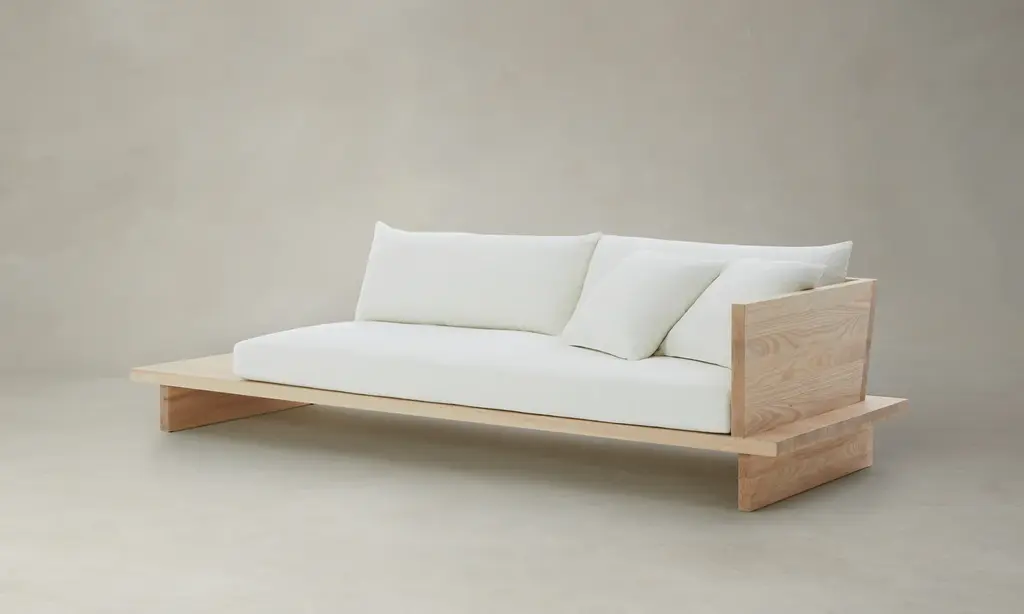 The Muir Sofa - Performance Linen Weave Beige - 80" Width / Arm On Left / Pecan Ash