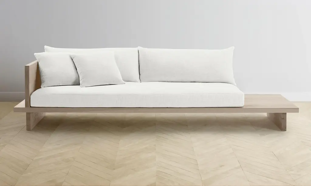 The Muir Sofa - Performance Linen Weave Pure White - 80" Width / Arm On Left / Pecan Ash