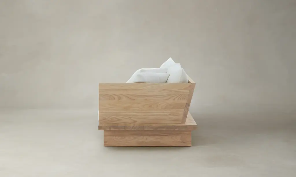 From the woodwork to the tailoring, every element of the Muir Sofa is a display of exquisite artisanship. Its angular frame extends beyond the seat cushion, allowing space for decorative objects or necessities. Handcrafted in North Carolina.