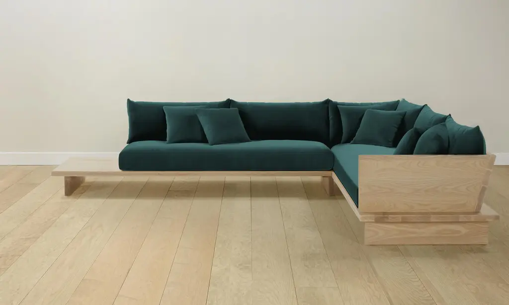 The Muir Sofa - Performance Velvet Emerald - 80" Width / Arm On Left / Coffee Ash