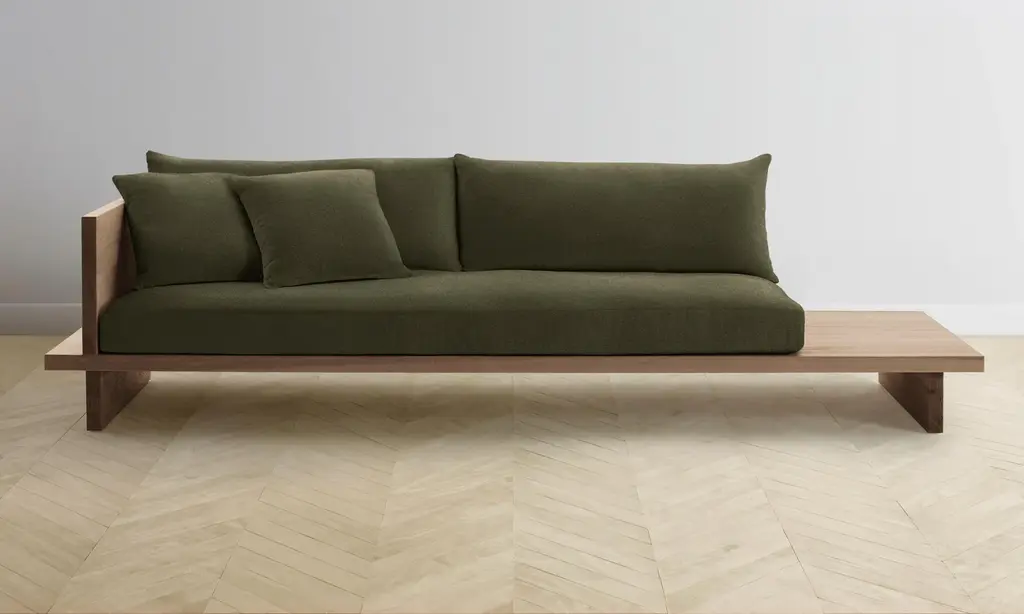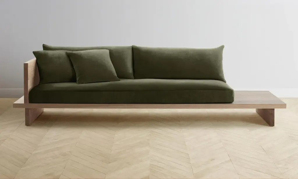 The Muir Sofa - Performance Velvet Emerald - 80" Width / Arm On Left / Pecan Ash