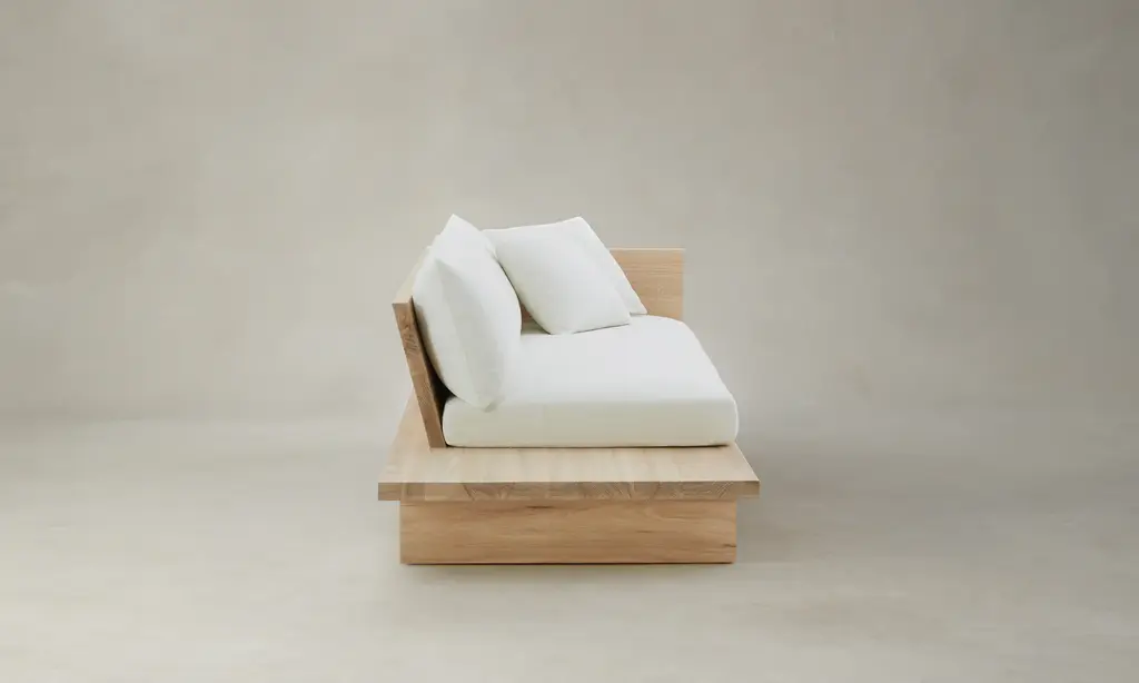 From the woodwork to the tailoring, every element of the Muir Sofa is a display of exquisite artisanship. Its angular frame extends beyond the seat cushion, allowing space for decorative objects or necessities. Handcrafted in North Carolina.