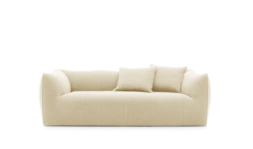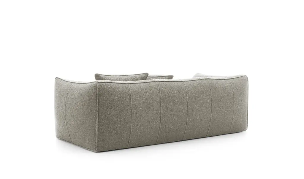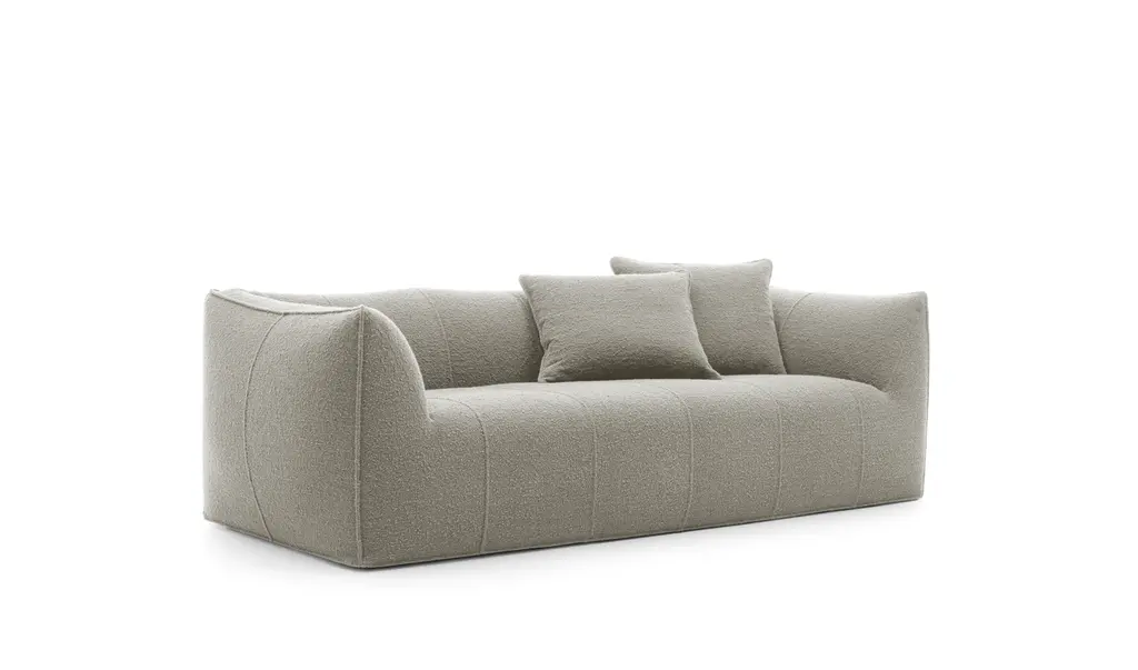 The Granbambola three-seater sofa is part of Le Bambole series, originally designed in 1972, awarded with the Compasso d’Oro in 1979. Icon of timeless contemporaneity and one of the most effective expressions of Made in Italy excellence combining research and creative flair, Le Bambole have provided a very personal answer to the theme of seats. What makes them special is the apparent absence of a load bearing structure, the extreme naturalness of the shape, and the combination of comfort, softness and elasticity that their appearance conveys. Where the original construction was based on a metal structure embedded in polyurethane, now the materials used are of the latest generation, starting with recycled polyethylene gives structure. A sustainable project thanks to the choice of materials and the construction method, that allows the components of Le Bambole to be completely disassembled and therefore easily recyclable.