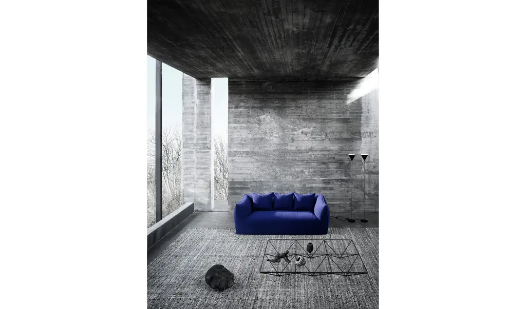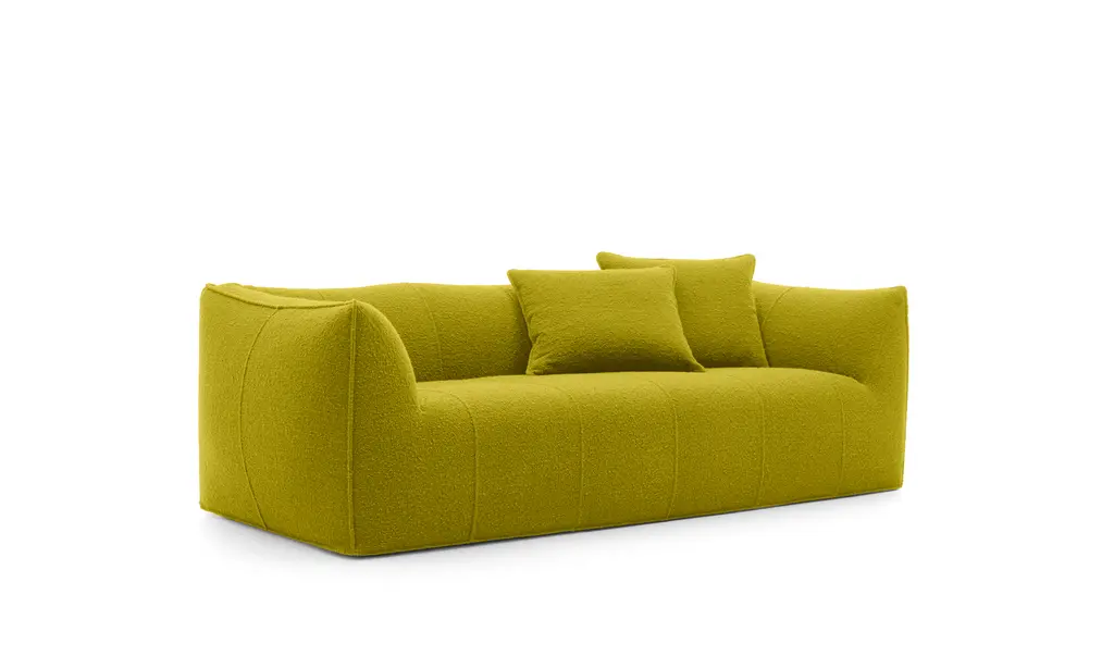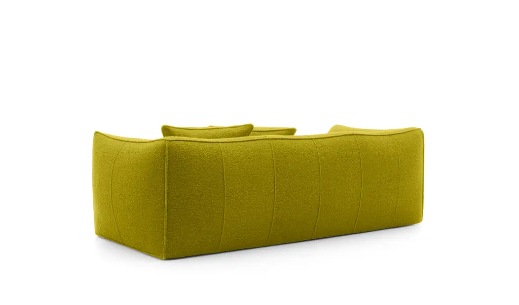 The Granbambola three-seater sofa is part of Le Bambole series, originally designed in 1972, awarded with the Compasso d’Oro in 1979. Icon of timeless contemporaneity and one of the most effective expressions of Made in Italy excellence combining research and creative flair, Le Bambole have provided a very personal answer to the theme of seats. What makes them special is the apparent absence of a load bearing structure, the extreme naturalness of the shape, and the combination of comfort, softness and elasticity that their appearance conveys. Where the original construction was based on a metal structure embedded in polyurethane, now the materials used are of the latest generation, starting with recycled polyethylene gives structure. A sustainable project thanks to the choice of materials and the construction method, that allows the components of Le Bambole to be completely disassembled and therefore easily recyclable.