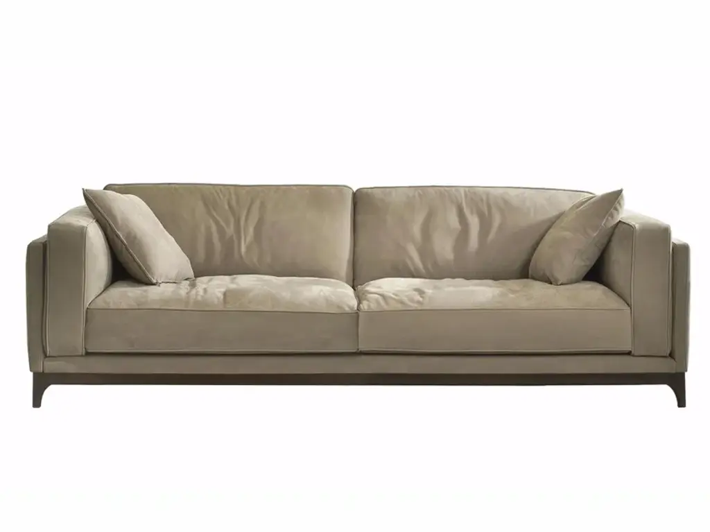 TIME - Sofa.A cosy, refined line becomes an original, exposed frame ready to encompass seating, backrest and armrest cushions. Original ash frame available in assorted colours. Refined piping stitch adds a lovely touch and frame the removable fabric cover that embraces soft, cosy goose down for unparalleled comfort.