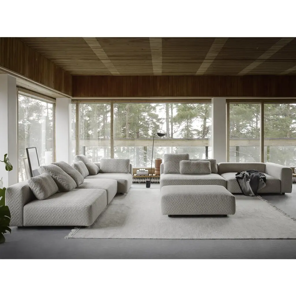 Interface's Toast sofa gathers family and friends together. The soft lines, plush feather-filled back cushions and deep seats of the Toast sofa provide a pleasant setting for both relaxed sitting and socializing. The modular Toast collection makes it easy to put together a combination that best suits the space, and it can also be updated later. The minimalist look of the Toast series fits into a wide range of interiors, and the beautifully finished modules can be placed even in the middle of the room. The Toast sofa, made in Finland, is a charming addition for both the living room and public spaces alike. In this model, the armrest is located to the left when viewed from the front.