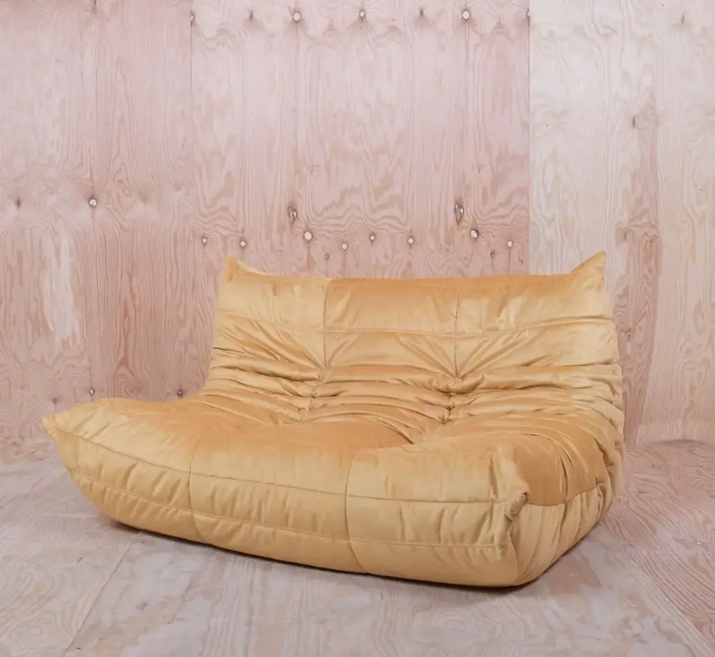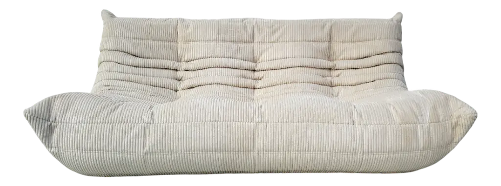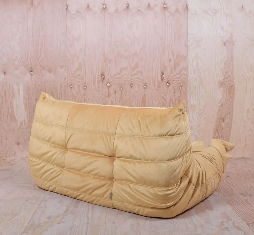 The Ligne Roset Togo sofa is a legendary and iconic piece of furniture designed by French designer Michel Ducaroy. It was first presented in 1973 and is known for its unconventional design and high seating comfort. Here are some product information on the Togo sofa: The Togo sofa is characterized by its organic, soft, padded shapes. It consists of various upholstery modules that are seamlessly connected and create an inviting, relaxed seat. The sofa has no visible legs, which gives it a floating look. The Togo sofa will be padded with high -quality foam and covered with velvet. Dimensions: The Togo sofa a width of 131 cm, a depth of 102 cm and a height of 70 cm. This piece has an attribution mark, I am sure that it is completely authentic and take full responsibility for any authenticity issues arising from misattribution