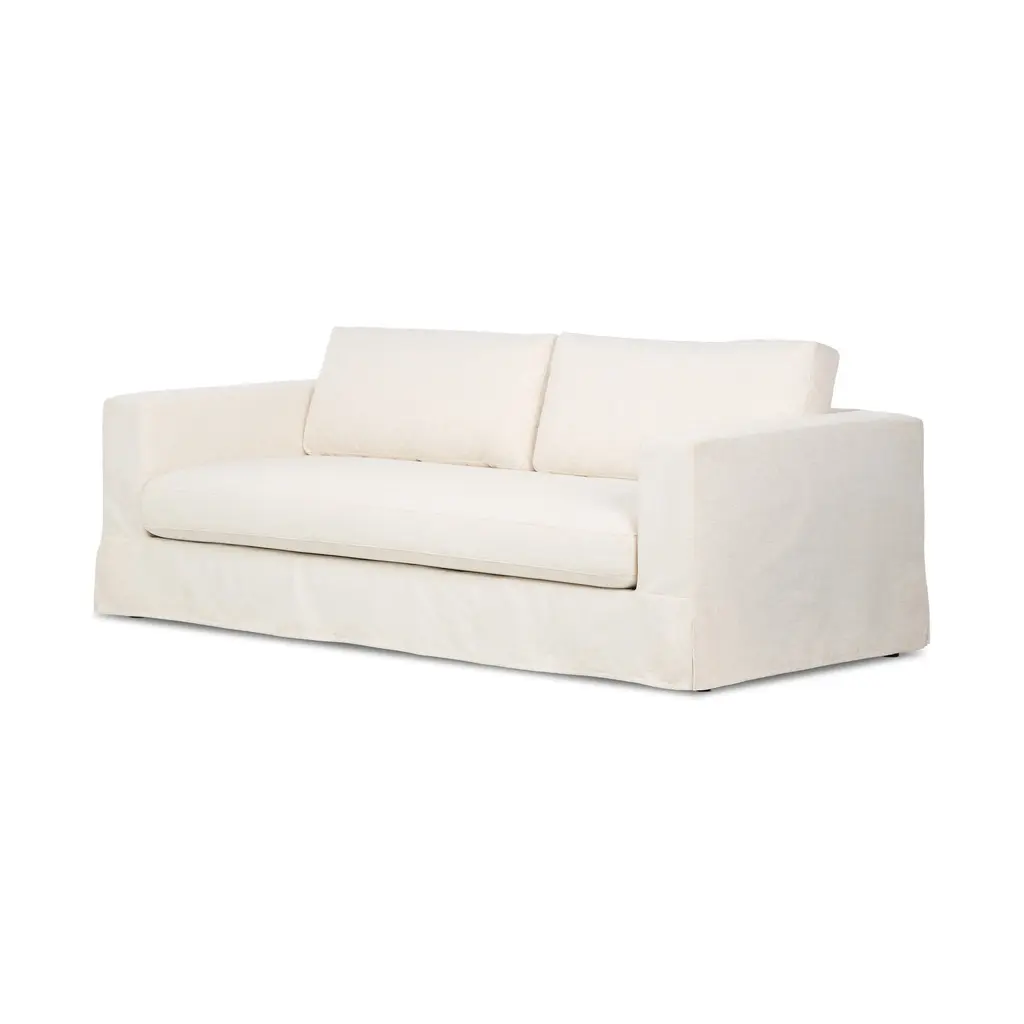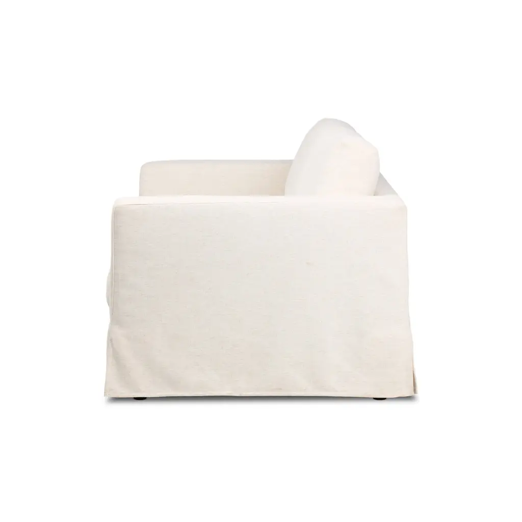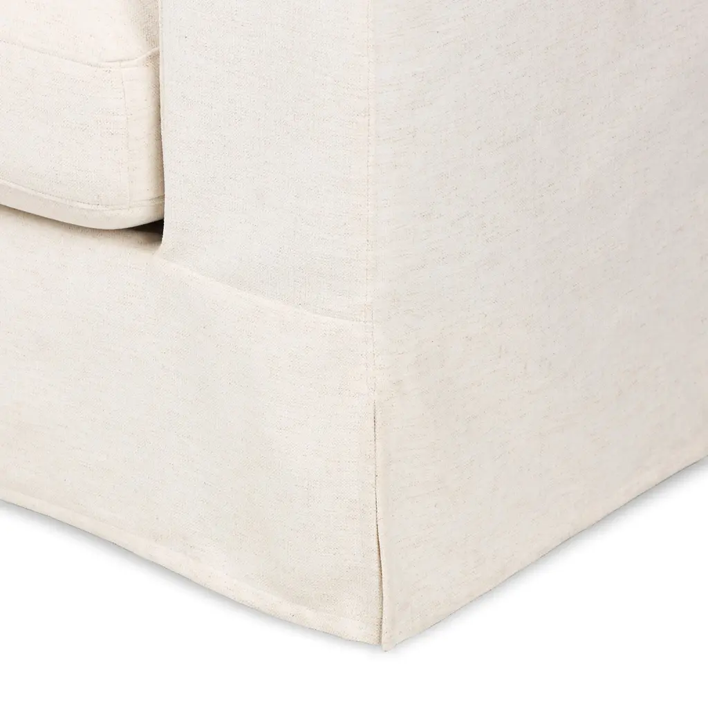 With its clean, laid-back look and modern silhouette, the Tovana Sofa from Four Hands is designed for ultimate relaxation. Crafted in Mexico, this spacious sofa features a unique draped form with deep pleats, wide arms, and an oversized bench-style seat cushion. Loose, feather-blend back cushions enhance the sink-in comfort, creating an inviting centerpiece for any living room. Upholstered in durable performance fabric, it offers a relaxed, slipcovered look with a perfectly tailored, non-removable finish. Highlights: