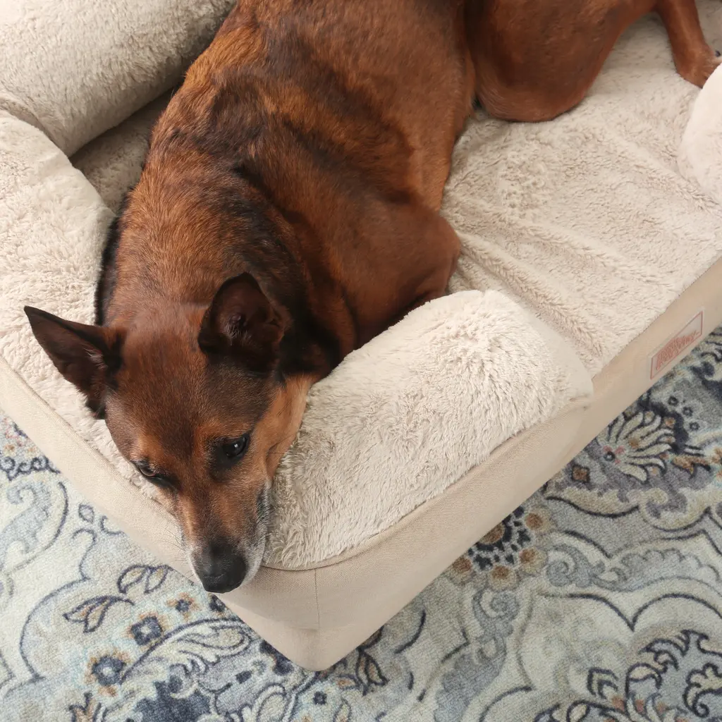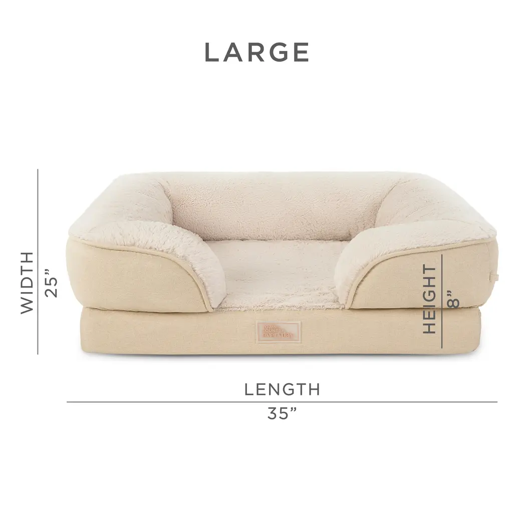 Town & Country Everyday Cuddletown Comfy Solid Bolster Sofa Supportive Pet Bed - L: 35.03"x24.8"x8.26" - Beige