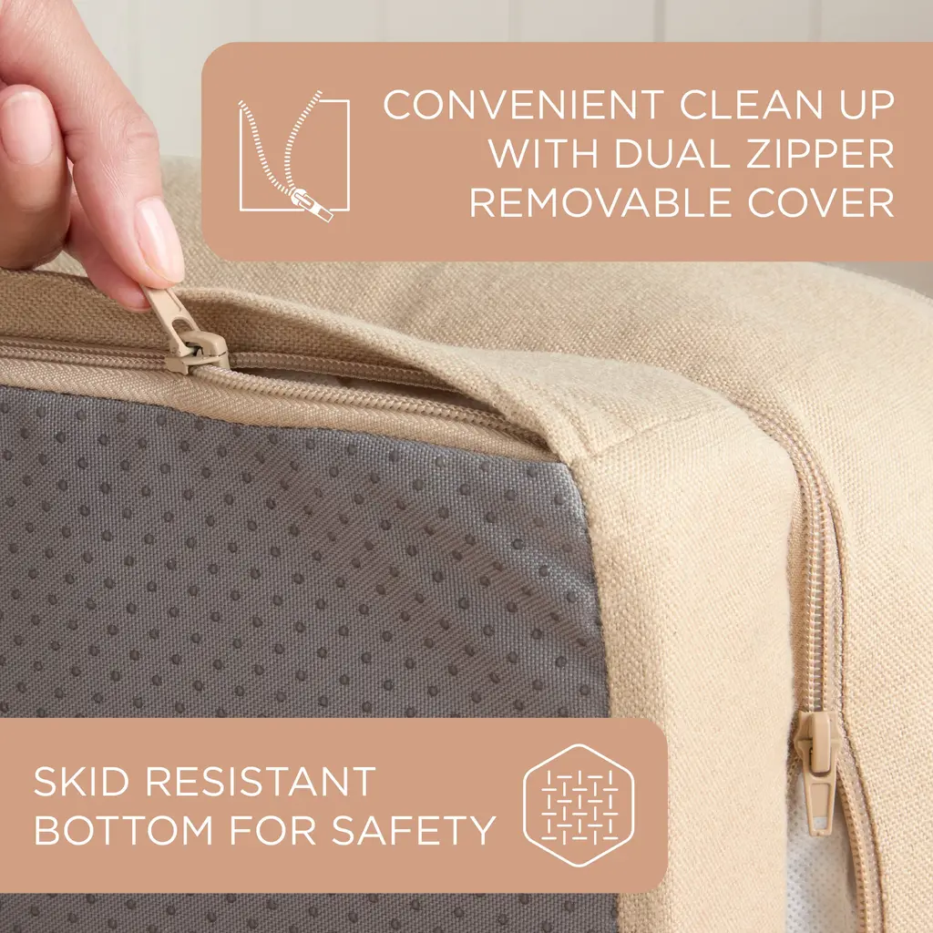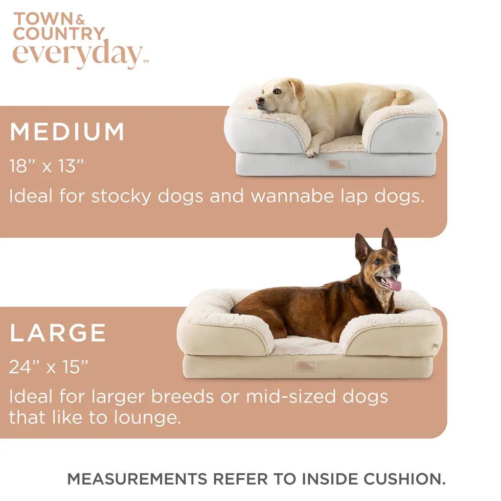 Treat your pet with comfort with the Town & Country Everyday CuddleTown Comfy Solid Bolster Sofa Pet Bed. This cozy haven is made with supportive and calming egg crate foam with super soft interior lining surrounding your furry friend in cooling, soothing comfort. With a removable, machine-washable cover, keeping this sofa pet bed fresh and clean is a breeze. Plus, the water-repellent fabric ensures it stays in great shape for a long time. Ideal for pets of all sizes, this stylish and functional bed is a perfect addition to any pet lover's home. Standard 100 by Oeko-Tex Certified.