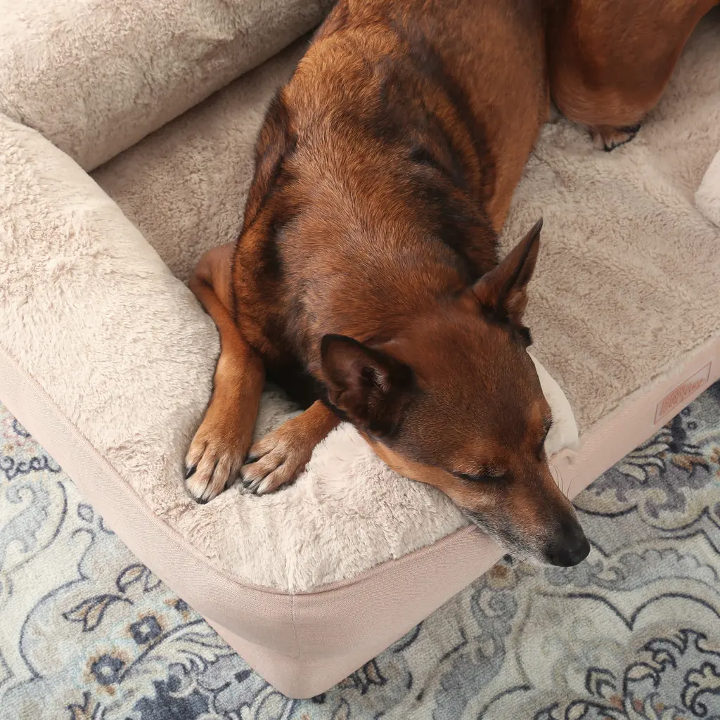 Town & Country Everyday Cuddletown Comfy Solid Bolster Sofa Supportive Pet Bed - M: 27.95"x22.83"x8.26" - Warm Taupe