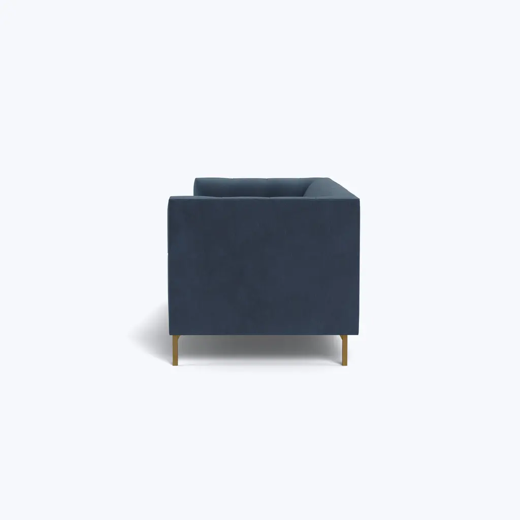 Elevate your living space with the Tribeca Sofa, an exclusive offering from abc carpet & home. Featuring clean lines and a tuxedo-like aesthetic paired with square arms and sleek legs, this contemporary sofa exudes a sense of refined luxury that effortlessly complements any decor. The Tribeca Collection goes beyond aesthetics to prioritize your comfort. This collection features tight seat cushions, exuding a formal aesthetic while providing unparalleled comfort atop a balanced suspension base. Crafted with a sustainably sourced Goodwood frame, this sofa is not only aesthetically pleasing but also eco-conscious, offering peace of mind as you create lasting memories at home. Customize your Tribeca Sofa with Cobble Hill's wide range of color and fabric combinations, offering more than 80 options to suit your unique style and preferences. Whether it's the Crypton Performance Blend or Kelley Performance Velvet, rest assured that each upholstery option is durable and easy to clean. From bold hues to subtle tones, our wide selection ensures that your sofa reflects your unique taste and personality. Simply select your dream color and fabric scheme, and your custom sofa will be shipped to your home in 8-10 weeks. Available in 74" and 84" styles, the Tribeca Sofa ensures that you have a spacious and inviting seating area for relaxation and socializing. Additionally, choose between brass and silver leg finishes to perfectly match your interior style. Proudly made in the USA, each piece in the Cobble Hill collection reflects a commitment to quality craftsmanship and ethical manufacturing practices. Maintaining the pristine condition of your sofa is effortless with simple care instructions. Spot clean with mild detergent and vacuum frequently to keep it looking fresh. For a deeper clean, professional services are recommended. The seat cushions of the Tribeca Sofa are crafted with a blend of foam, fiber, and feather/down, channeled to ensure even fill distribution. Back cushions feature a fiber and feather blend encased in a channeled down-proof casing. Rest assured, our fill is Responsible Down Standard certified and meets USDA hypoallergenic regulations, free from flame retardant chemicals. Whether used as a standalone centerpiece or paired with other Tribeca chairs and sofas to create a unique ensemble, the Tribeca Sofa from Cobble Hill is sure to make a lasting impression in your home.