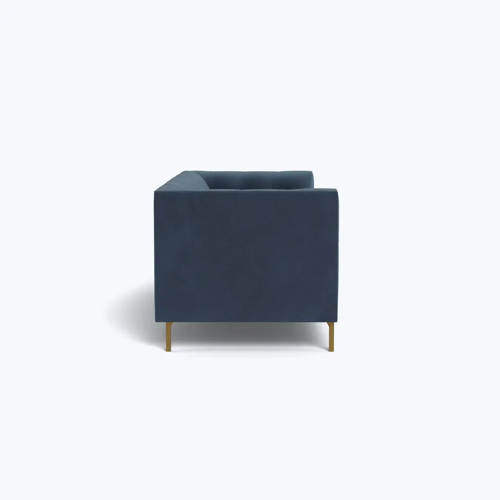 Elevate your living space with the Tribeca Sofa, an exclusive offering from abc carpet & home. Featuring clean lines and a tuxedo-like aesthetic paired with square arms and sleek legs, this contemporary sofa exudes a sense of refined luxury that effortlessly complements any decor. The Tribeca Collection goes beyond aesthetics to prioritize your comfort. This collection features tight seat cushions, exuding a formal aesthetic while providing unparalleled comfort atop a balanced suspension base. Crafted with a sustainably sourced Goodwood frame, this sofa is not only aesthetically pleasing but also eco-conscious, offering peace of mind as you create lasting memories at home. Customize your Tribeca Sofa with Cobble Hill's wide range of color and fabric combinations, offering more than 80 options to suit your unique style and preferences. Whether it's the Crypton Performance Blend or Kelley Performance Velvet, rest assured that each upholstery option is durable and easy to clean. From bold hues to subtle tones, our wide selection ensures that your sofa reflects your unique taste and personality. Simply select your dream color and fabric scheme, and your custom sofa will be shipped to your home in 8-10 weeks. Available in 74" and 84" styles, the Tribeca Sofa ensures that you have a spacious and inviting seating area for relaxation and socializing. Additionally, choose between brass and silver leg finishes to perfectly match your interior style. Proudly made in the USA, each piece in the Cobble Hill collection reflects a commitment to quality craftsmanship and ethical manufacturing practices. Maintaining the pristine condition of your sofa is effortless with simple care instructions. Spot clean with mild detergent and vacuum frequently to keep it looking fresh. For a deeper clean, professional services are recommended. The seat cushions of the Tribeca Sofa are crafted with a blend of foam, fiber, and feather/down, channeled to ensure even fill distribution. Back cushions feature a fiber and feather blend encased in a channeled down-proof casing. Rest assured, our fill is Responsible Down Standard certified and meets USDA hypoallergenic regulations, free from flame retardant chemicals. Whether used as a standalone centerpiece or paired with other Tribeca chairs and sofas to create a unique ensemble, the Tribeca Sofa from Cobble Hill is sure to make a lasting impression in your home.