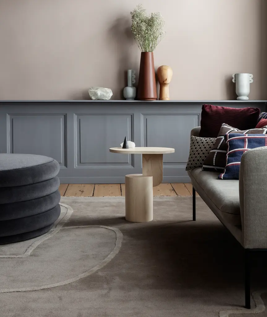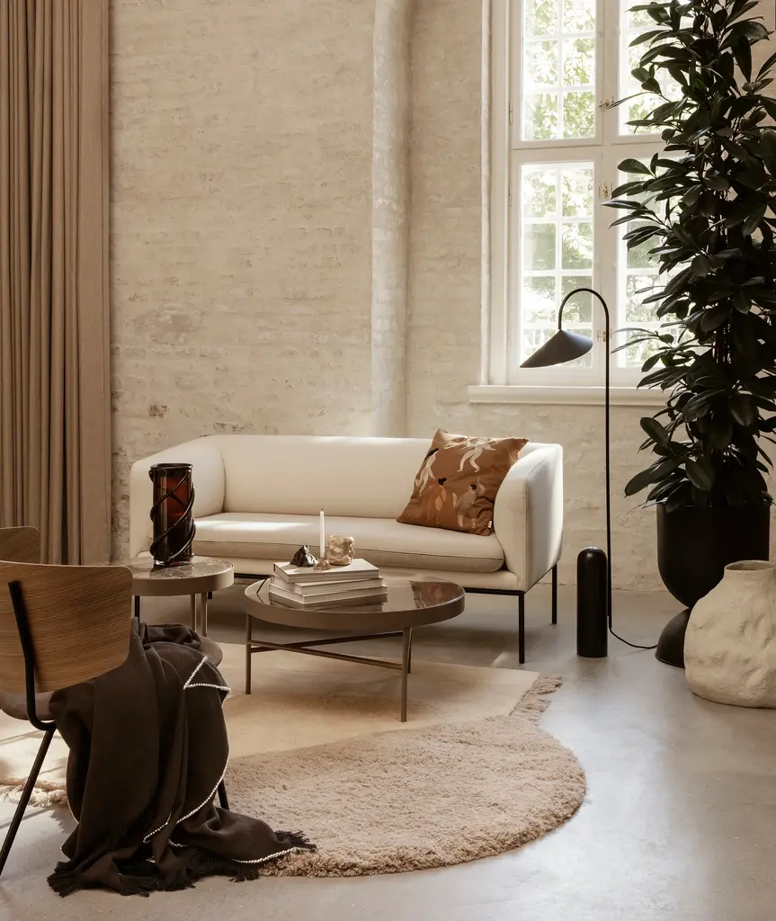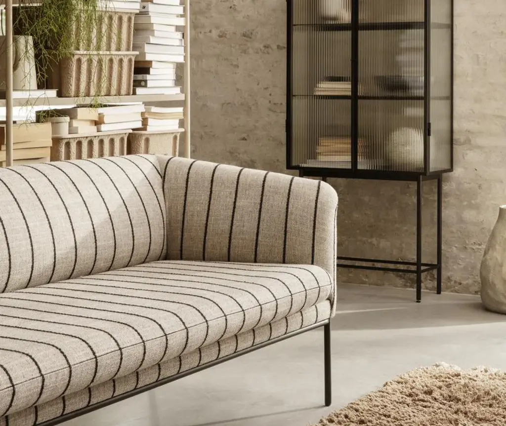 This modern and multifunctional 3-seater has a strict sculptural outer shape which complements the inviting rounded inner with organic curves. The design is upholstered with an array of fabrics that offer a lovely texture and color nuance. No matter which color you choose, this sofa has a timeless and clean look with its tight upholstery and simple frame in powder coated metal, yet with a feminine touch due to the soft inner curves and warm materials.
