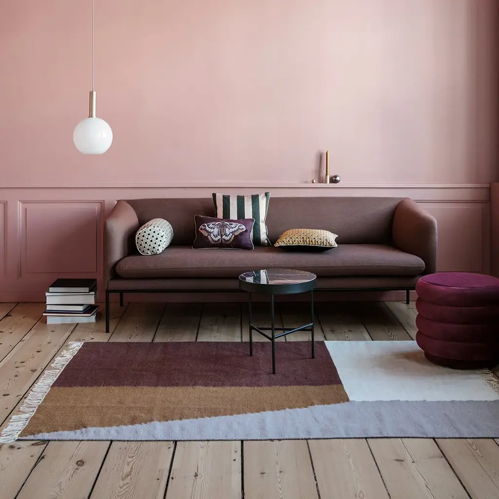 This modern and multifunctional 2-seater & 3-seater is all about contrasts, as a strict sculptural outer shape complements an inviting rounded inner with organic curves. The reversible seat cushion is dual-tone and can be turned around in a snap in order to let you decide whether you want a classic or a bolder look depending on your mood or personal preference. No matter which color you choose, this sofa has a timeless and clean look with its tight upholstery and simple frame in powder coated metal, yet with a feminine touch due to the soft inner curves and warm materials. In addition to the light and slim metal legs – which give an elegant, floating expression – the discrete size makes this sofa practical and easy to fit in to your existing furniture and mix with your personal style.