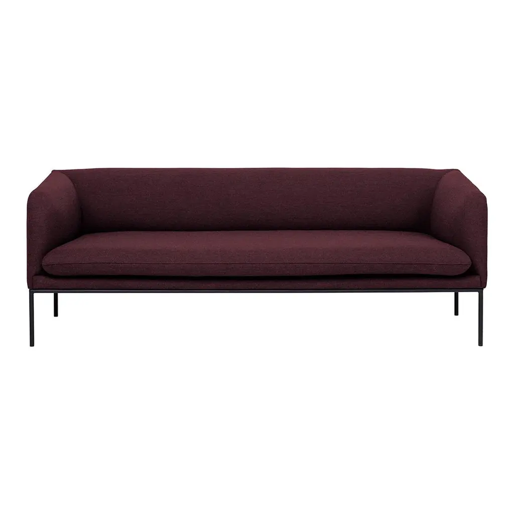 This modern and multifunctional 2-seater & 3-seater is all about contrasts, as a strict sculptural outer shape complements an inviting rounded inner with organic curves. The reversible seat cushion is dual-tone and can be turned around in a snap in order to let you decide whether you want a classic or a bolder look depending on your mood or personal preference. No matter which color you choose, this sofa has a timeless and clean look with its tight upholstery and simple frame in powder coated metal, yet with a feminine touch due to the soft inner curves and warm materials. In addition to the light and slim metal legs – which give an elegant, floating expression – the discrete size makes this sofa practical and easy to fit in to your existing furniture and mix with your personal style.
